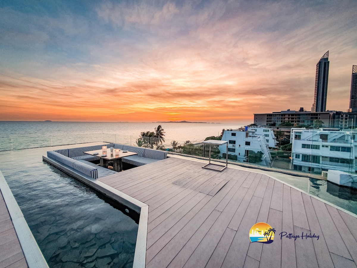 Панорамный пентхаус 5* на 32 этаже в 20 м. от пляжа чистейшей бухты Банг Сорей. Площадь номера 60 м. кв. Два балкона. Виды на море, горы, озеро. Высота потолков 3 м. На территории бассейн, фитнесс, хамам, теннисный корт, парковка. Рядом морские рестораны, Сад Нунг-Нуч, аквапарт Картун и Рамайян, Серебряное озеро, Итальянская деревня.