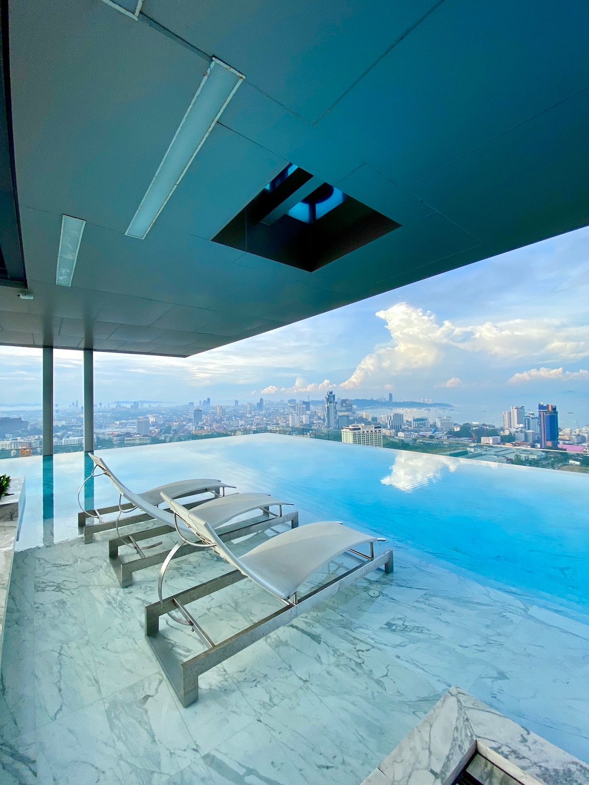 Beachfront Paradise - 1 Min to beach. Experience the best of Pattaya at this luxurious beachfront condo, just a 1-minute walk to the city’s finest beach. Surrounded by restaurants, shops, and markets within a 3-minute stroll, it’s the perfect location for relaxation and convenience. Enjoy a stunning 80-meter pool that laps against your private terrace, creating a unique oasis. With a spacious living room and only 10 minutes to Pattaya Walking street, this is the ideal retreat for your getaway.