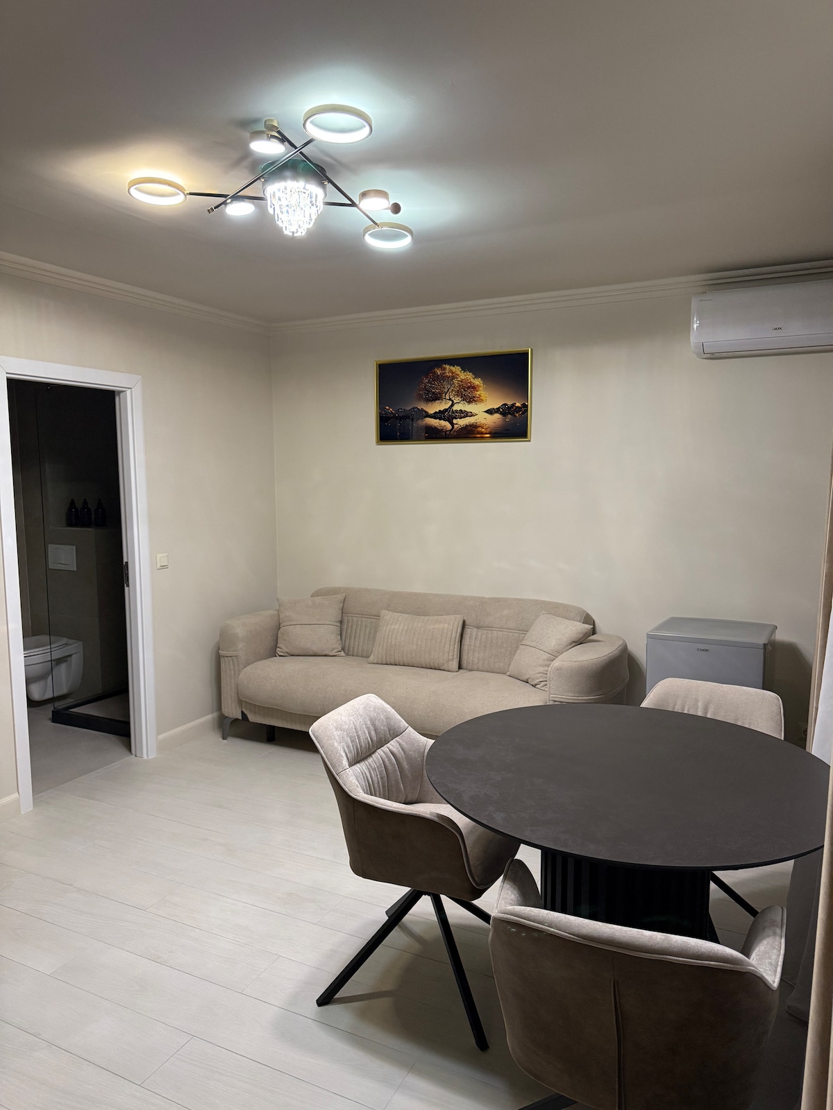 Relax in this quiet and elegant space! The apartment is located on the ground floor of a house, with separate entrance from the staircase, has a spacious living room with LG led TV 65", a fully furnished kitchen, 2 bedrooms with a double bed each and 2 bathrooms (one with large shower). Other facilities: air conditioning, underfloor heating. Parking is free and safe on the street in front of the house. Nearby: small food market, Lidl shop. 1.5 km to the city centre.