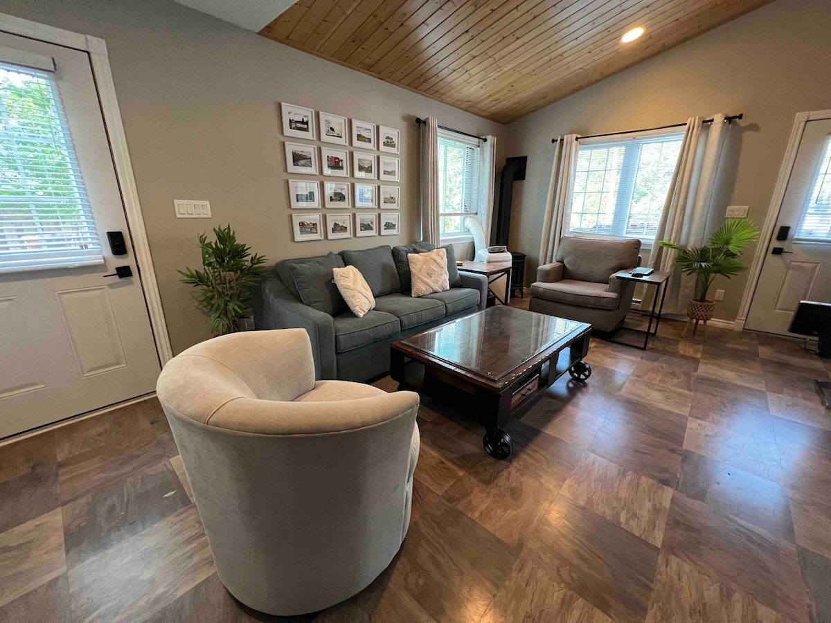 Welcome to this luxury cottage on the water. The perfect place to relax and unwind while listening to the waterfall and babbling brook flowing past only a few feet away. If you're looking for privacy and tranquility along with all the pleasures of a luxury stay then look no further. This property boasts a propane fireplace inside as well as one outside, in-floor heat and A/C. Fully equipped kitchen, two bedrooms with hotel quality mattresses and a bathroom that exudes high-end style and decor.