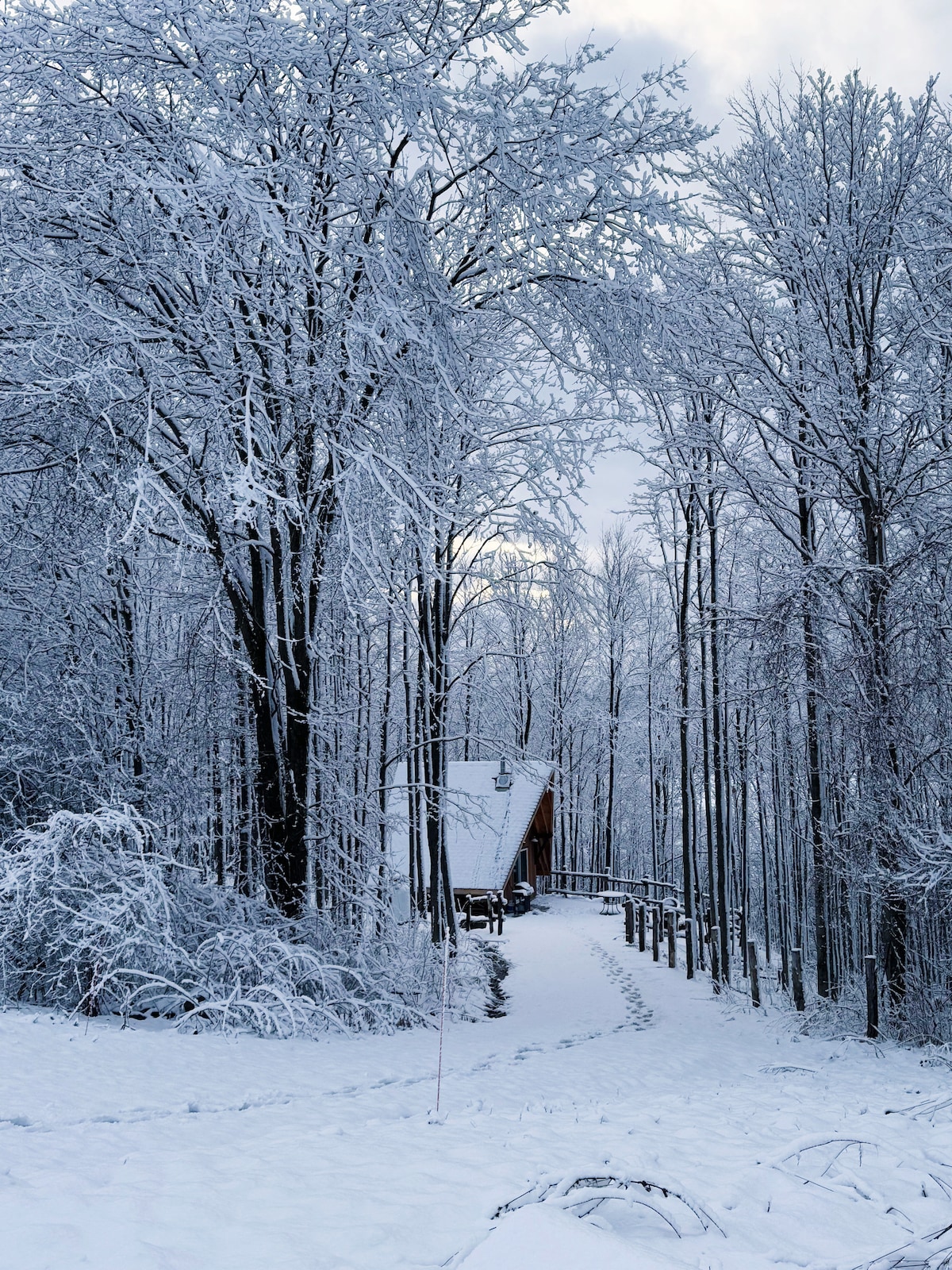 This is an air b&b you'll definitely remember. Experience the magical feeling of waking up among the trees and birds. Feel the exhilaration of taking an outdoor shower. Enjoy the crackling fire and take the time to dream again. Nature, art, waterfalls and trails are all just outside your doorstep. Try our available snowshoes to explore even further! You don't want to miss this peaceful retreat.