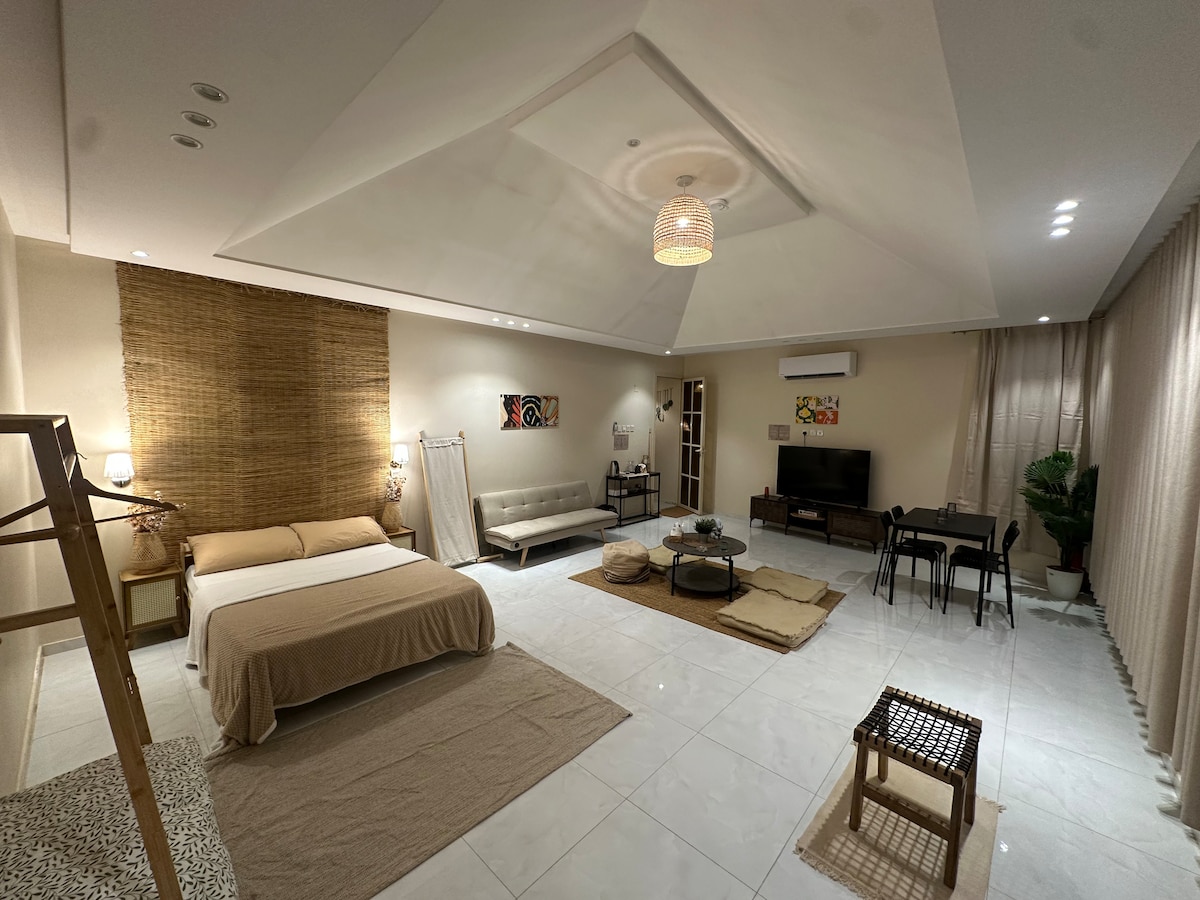 Welcome to FAYAH A cozy and spacious Privet Suite with everything you need for a comfobrtable stay. What’s inside: • Outdoor seating • Private Garage • Comfy sleeping area • 65” smart TV. • Coffee corner with microwave, oven, kettle & fridge • Bathroom • Hotel-style amenities What makes it special: • Close to the beach, jet ski & swimming • Near Loopagoon • Surrounded by cafés & restaurants 🚚 Perfect for singles or couples seeking a relaxing coastal escape.