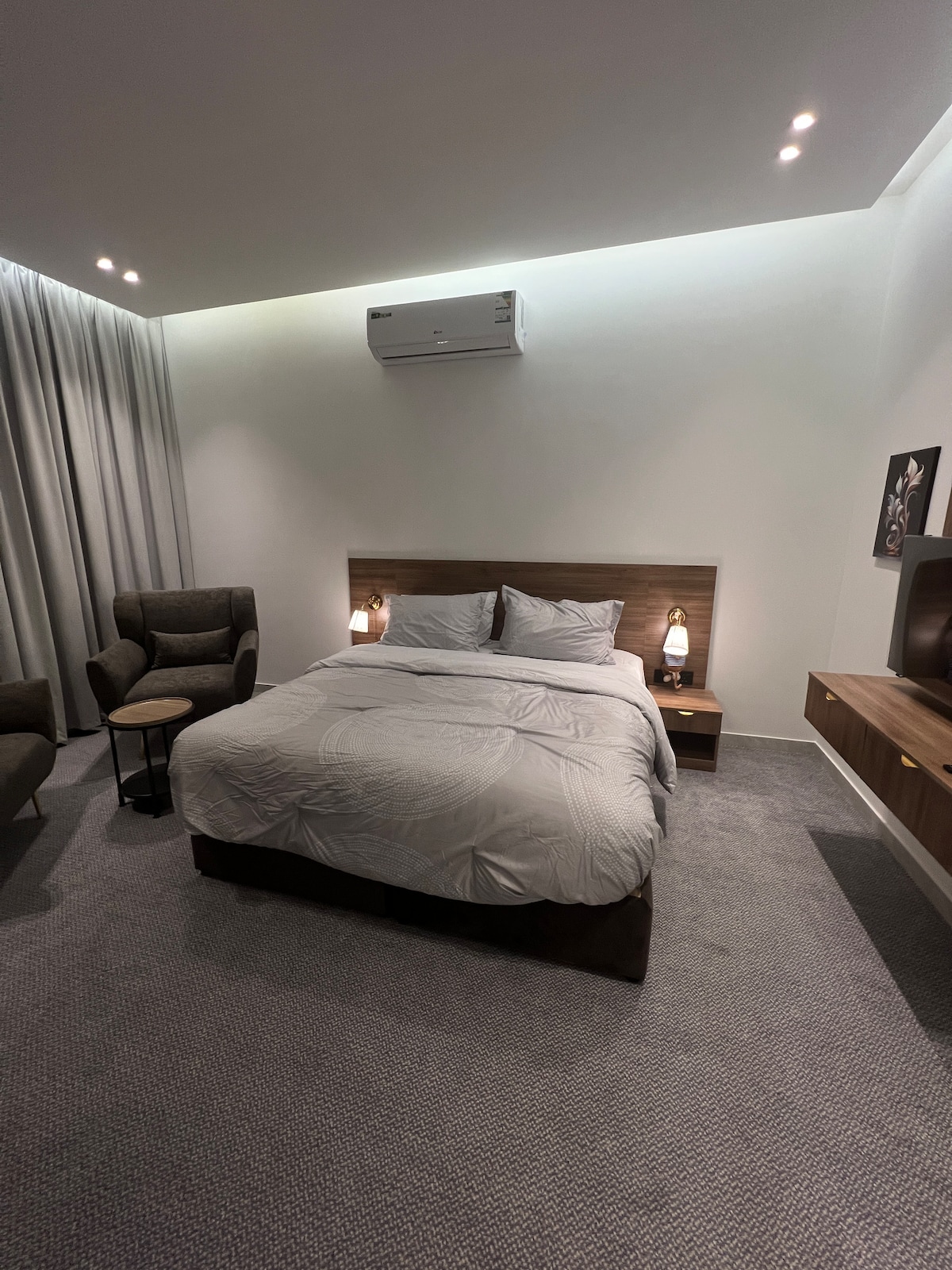 تصميم هذا السكن مستوحى من التصميم الايطالي وتم تنسيقه بعناية من اجل توفير اعلى مراحل التجانس البصري كذالك تم توفير اجود انواع المراتب لسرير النوم من اجل استرخاء عميق بالنوم كذالك تم توفير اجود انواع المكيفات البارده ❄️❄️ والاهتمام بالنظافه 🧼🫧 وتعطير المكان 🌺 خدمة تنظيف وتغيير المفارش يومي مجاني 🧹🧻🪥