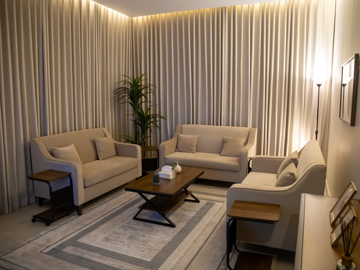 شقة أنيقة بغرفة نوم وصالة