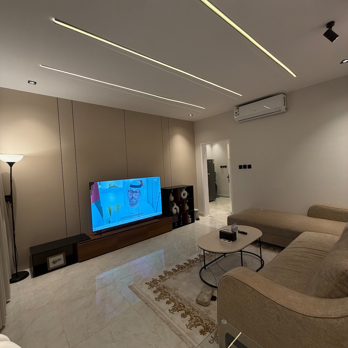 Elegant Apartment – Al-Khazama, Al-Khobar ✨ 🛏 3 bedrooms- 🛋 Spacious living room + Smart TV (Shahid VIP & Netflix) 🍳 Fully equipped kitchen ❄️ Central & split A/C 🌐 High-speed WiFi 🔑 Smart entry | 🚗 Parking 📍 Prime location near Bahrain Causeway, Corniche & malls ✨ Perfect for families & comfort seekers