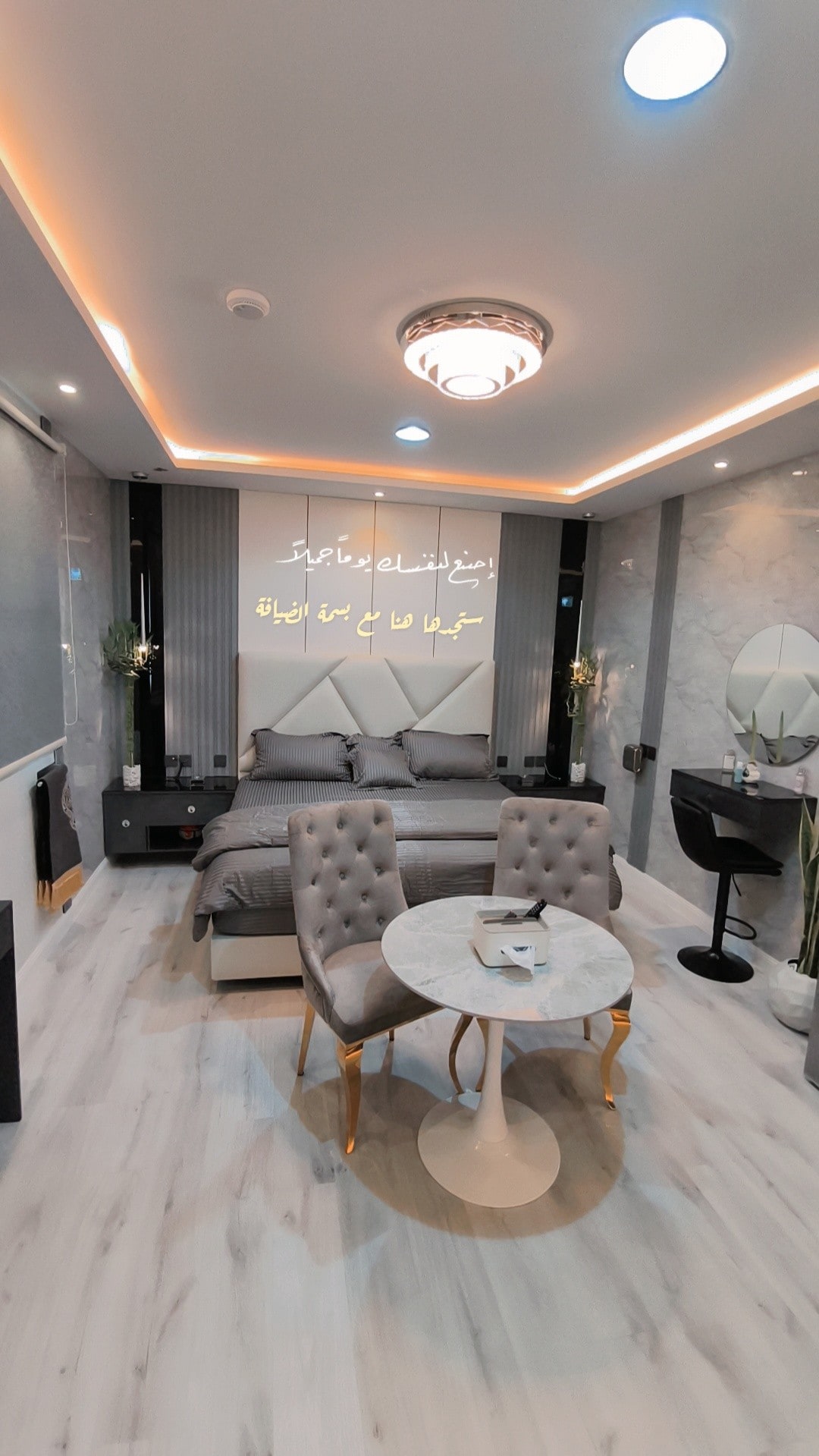 استديو فندقي بتصميم راقي وجميل لقضاء ليلة هادئة تتميز بروعة التصميم، المكان مجهز بكل التفاصيل الجميلة لقضاء أجمل الأوقات أهلاً وسهلاً بضيوفنا الكرام ، يقع الاستديو في حي مغلق يتسم بالهدوء، وقريب لكل الخدمات وبالقرب من مهرجان التمور السنوي