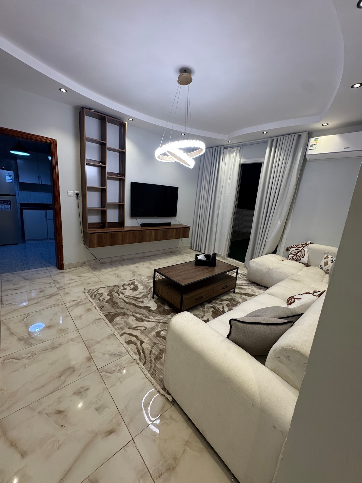 A luxurious apartment, equipped with modern furniture and all amenities for comfort and relaxation. It consists of two main bedrooms and Free extra bed, 4 bathrooms and a living room that fit up to 6 people, and a designated room for laundry, in addition to a full equipped kitchen, The apartment also gives you access to the Gym, swimming pool, lounge and meeting room.