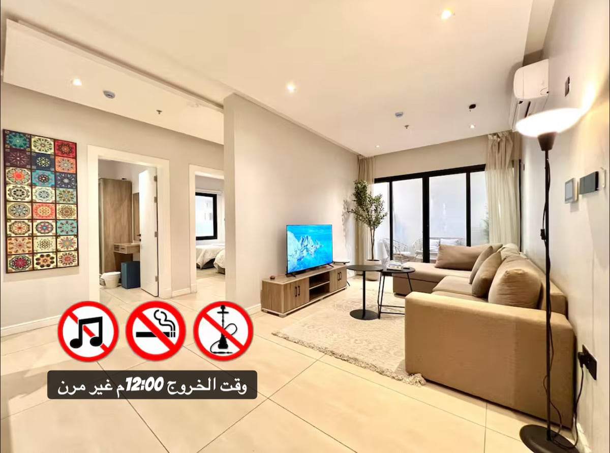 مرحبا بكم في شقتنا التي توفر لكم إقامة استثنائية تفوق توقعاتكم.الشقة تحتوي على غرفة نوم مجهزة بأجود أنواع المراتب بالإضافة الى صالة منفصلة بأرائك مريحة مع شاشة ذكية 65 بوصة للاستمتاع(نتفلكس, شاهد, بي ان)+واي فاي. المطبخ مجهز بكامل الأدوات لتلبية جميع احتياجاتك. تتوفر جلسة خارجية بتصميم ريفي واطلالة مميزة على المركز المالي مناسبة لإقامة المناسبات والجمعات مع الاهل والاصدقاء. الشقة مُجهزة للإقامات القصيرة والطويلة. الموقع رائع في قلب المدينة بالقرب من المعالم السياحية والخدمية والمطاعم.