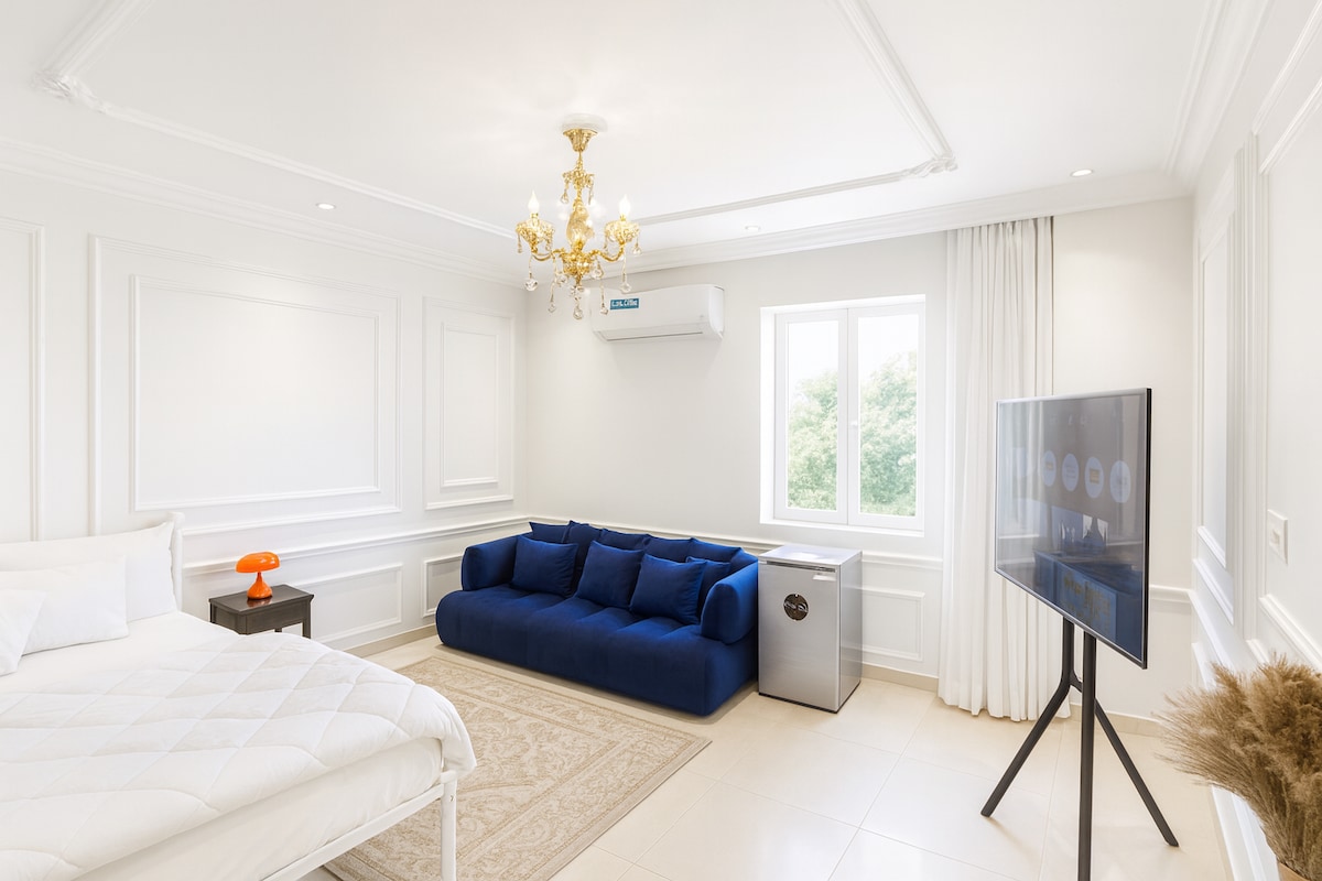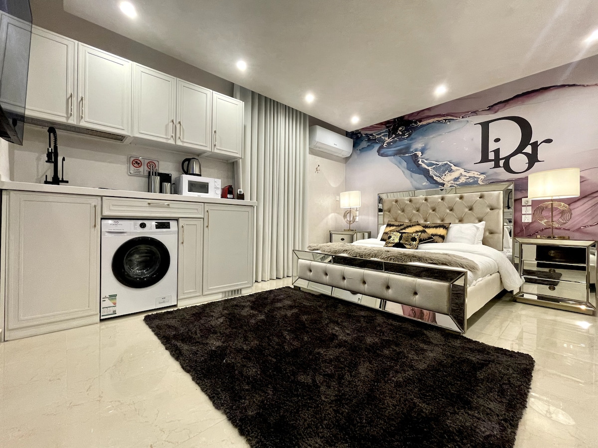 This distinctive location boasts its own unique style with designer’s furniture (Paramount Pictures). Nestled in the heart of the capital, it offers an unforgettable experience with easy access to every major landmark within a 5-minute drive. Whether you’re on a business trip or seeking a tranquil retreat from the world, this space is perfect for both productivity and relaxation.