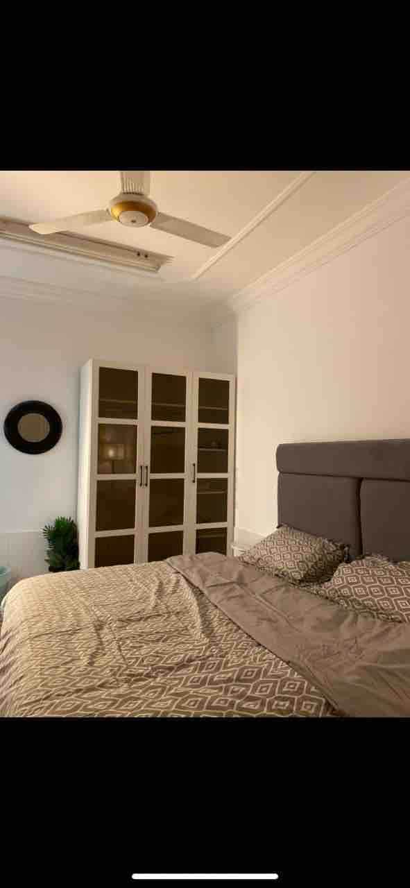 comfy apartment with one room, bathroom, living room, kitchen. with all necessary equipments and Machines. In front of a mosque, beside of compound and close to all services.