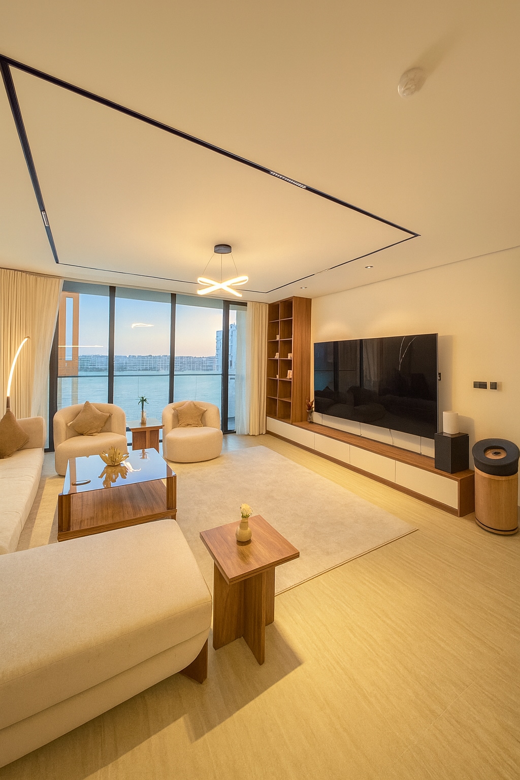 شقة واسعة بإطلالة بحرية بانورامية وغرفة سينما خاصة