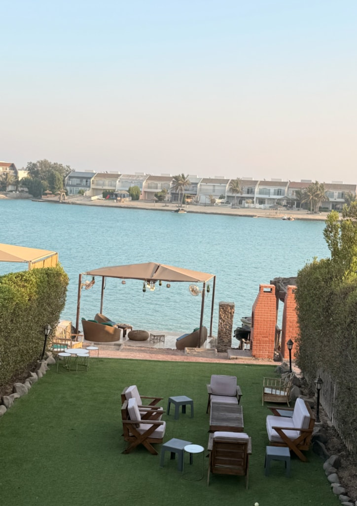 Hoping that you make a good memories with friends and family (All these in outdoor area not in main building) 1 big living room + dinning table 6 seats (service kitchen) only microwave and water heater and small fridge smart TV to watch movies 1 bed room 2 toilets 2 outdoor seats different locations Pool kayak for free You can swim either in pool or sea There is extra insurance 500sar