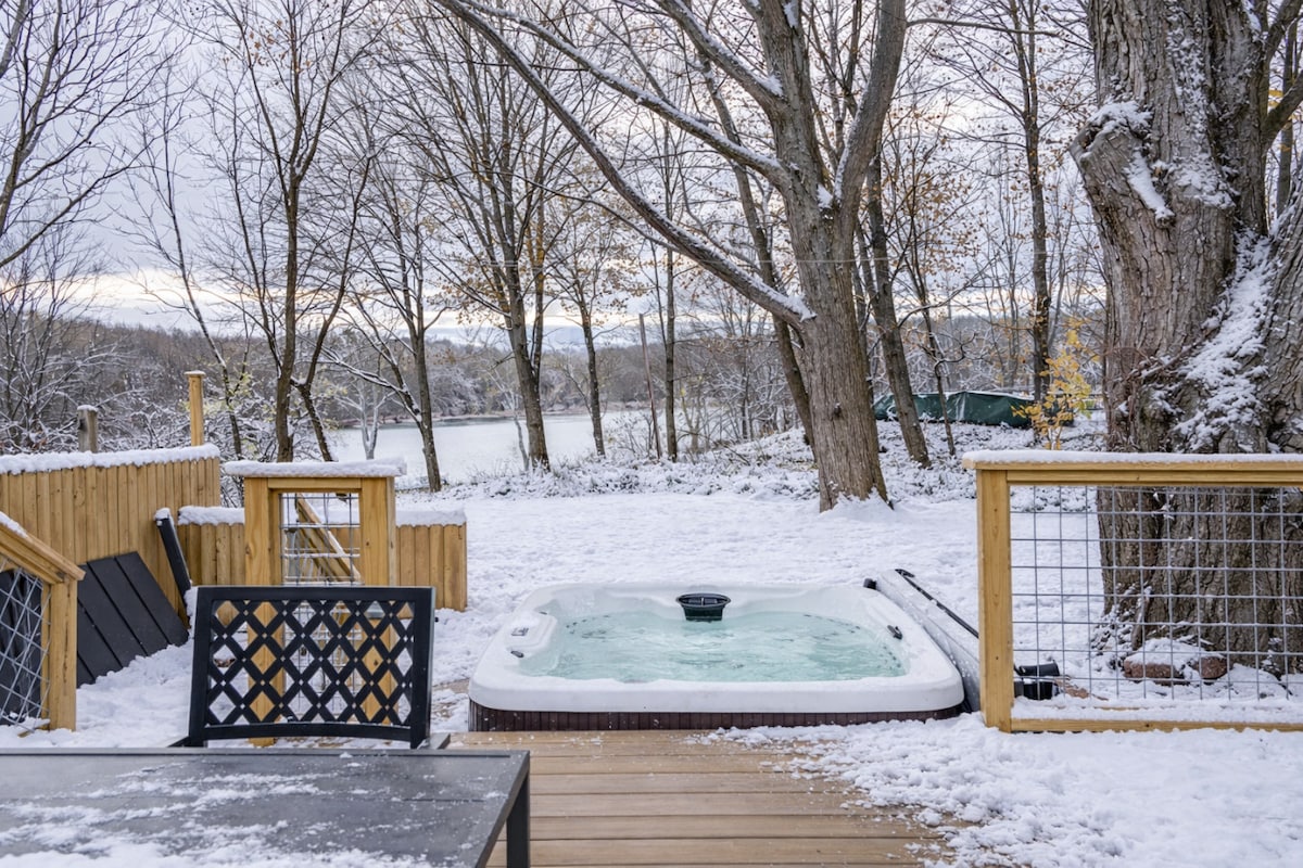 温馨的村庄度假屋•热水浴缸和河景