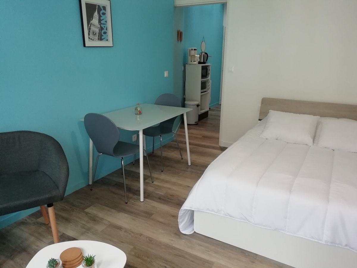 Studio de 26m2 avec jardinet , entrée indépendante dans rue calme en sens unique. A proximité du centre ville avec toutes les commodités : gare de Saujon, centre ville et thermes a environ 10 min à pieds. Saujon est une charmante ville avec son port, ces thermes, le lac, des aires de jeux. mais également sa foire , son marché, le train des mouettes... je vous invite à découvrir. A 15 min en voiture des plages, de Royan, de Saint Georges de Didonne. Mais aussi le zoo de la Palmyre.