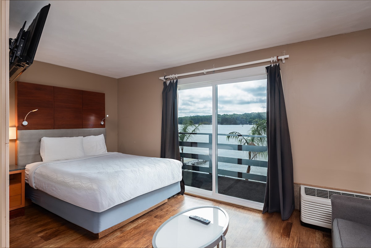 Enjoy a relaxing stay in our double queen room with a private balcony. Guests can unwind with lakefront views and easy beach access at our charming resort. Minutes from Wisconsin Dells attractions, our year-round resort offers endless activities and a serene atmosphere, perfect for creating lasting memories. Whether it's adventure or relaxation, you’ll find it here on the shores of Lake Delton. Resort fee: $20/room/night (payable at resort). Pet fee: $20/dog/night (payable at resort). Dogs only.