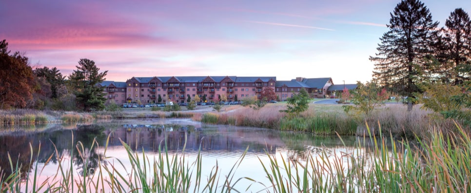 Tucked away in the natural beauty of the Wisconsin wilderness, Club Wyndham Glacier Canyon is connected to nine waterparks and four arcades. When you're not busy tubing and sliding, you can enjoy a variety of local attractions including wineries, casinos, golf courses, wildlife parks, hiking trails, horseback rides, horse-drawn carriage tours, and family fun like zip lining, go-karts, and magic shows.