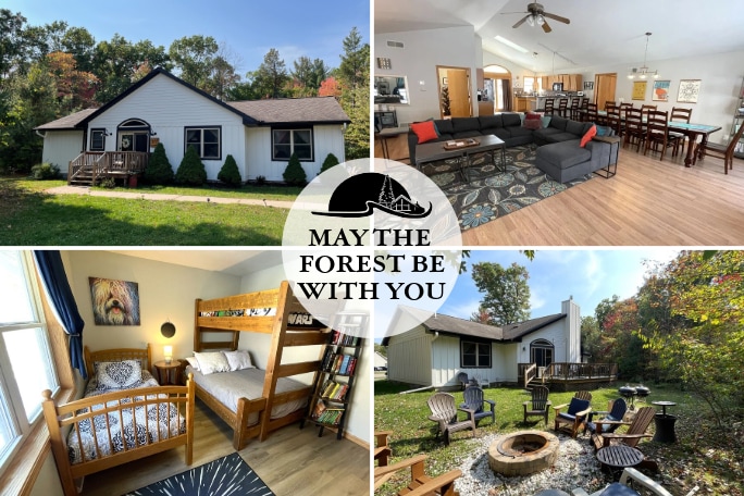 Welcome to Pinewoods Cabin – a custom-built log home nestled in the cozy pines of SW Wisconsin. This charming retreat features a one-of-a-kind design, room to sleep five, a large wood-burning stove, rooftop deck with railings, and more. Rustic charm meets modern comforts (52" 4K TV, Fast WiFi). Just minutes from Spring Green, WI - with cute shops, dining options, the Wisconsin River, American Players Theatre, Taliesin home of Frank Lloyd Wright, the House on the Rock Resort, and more!