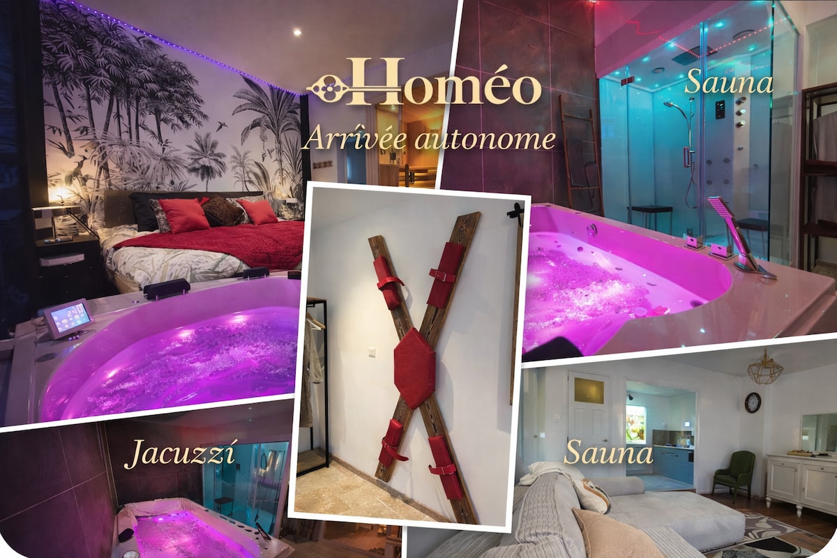 Bienvenue dans ce nid douillet saumurois, conçu pour que vous passiez un moment de bien-être complet avec jacuzzi extérieur, sauna, douche - hammam, avec mini jets hydromassants. Vous pourrez également profiter d'une petite terrasse. Savourez un film depuis le confort de votre lit via le rétroprojecteur avec barre de son, Netflix, Disney & Prime vidéo. Personnalisez les couleurs des spots et du ciel étoilé ou encore allumez la petite cheminée électrique pour un véritable instant cocooning.