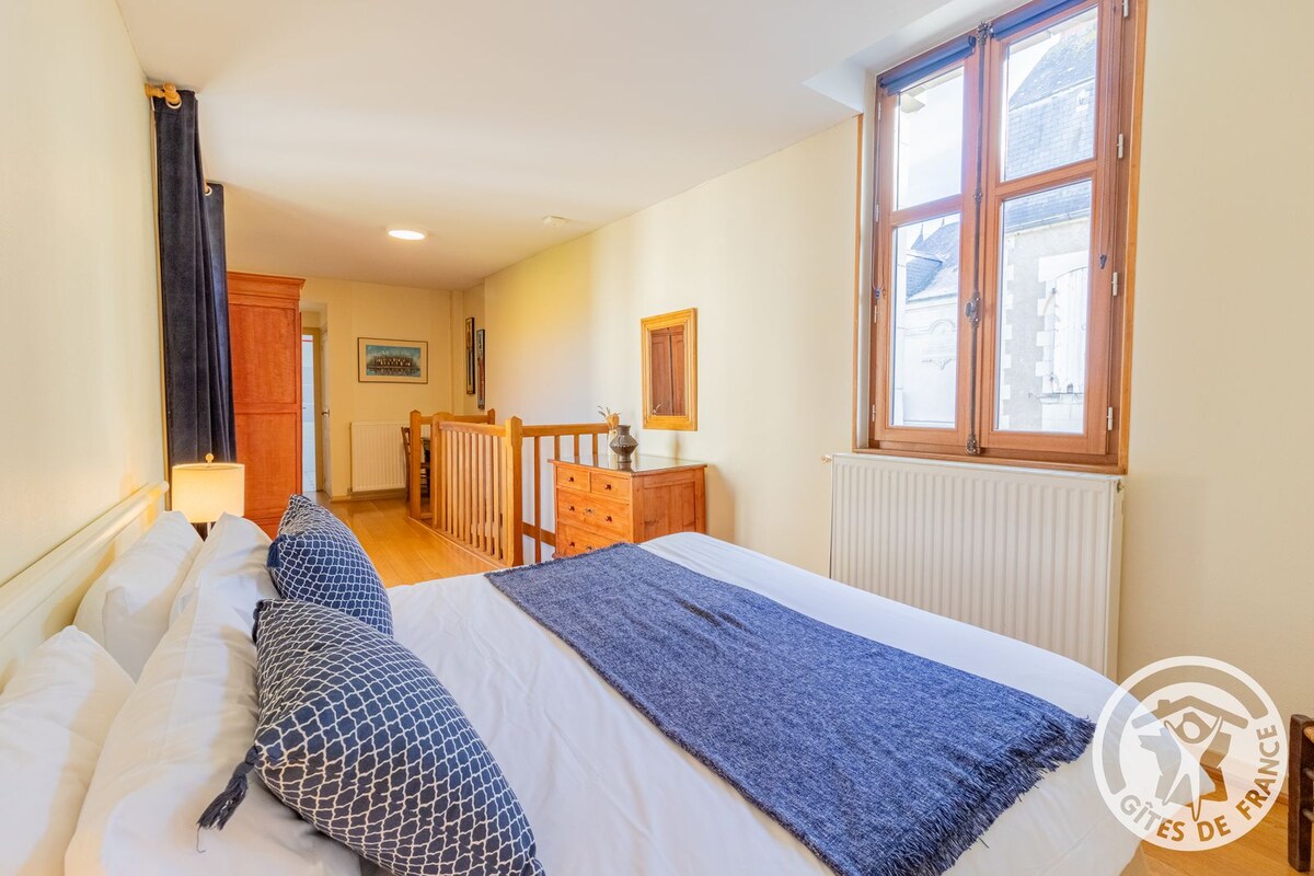 Ma maison se situe à proximité immédiate de l'école de cavalerie, du centre ville, des restaurants, de la Loire, des activités adaptées aux familles. Vous apprécierez mon logement pour son emplacement, son calme, sa cour et son charme (maison en tuffeau complètement rénovée). Il est très facile de se garer gratuitement et un local peut être mis à votre disposition pour ranger vos vélos. Parfaite pour couples, voyageurs en solo, voyageurs d'affaires et familles. Deux étages.