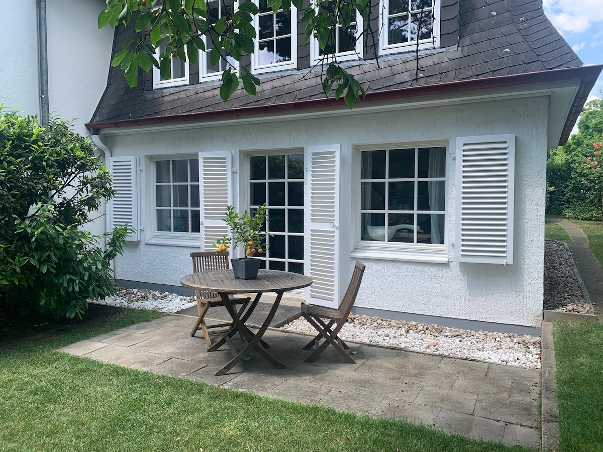 Wunderschönes, frisch renoviertes Gästehaus mit ca. 50 qm im Herzen von Rhöndorf. Mit eigenem kleinen Garten, überdachtem Sitzplatz und eigenem Eingang. Rhöndorf, am Fuße des landschaftlich eindrucksvollen, sagenumwobenen Drachenfels im Siebengebirge gelegen, ist ein malerischer Ort am Rhein und liegt 15 km südlich von Bonn. Von hier aus lässt sich perfekt die nähere und weitere Umgebung der Region erkunden oder einfach ein paar Etappen des Rheinsteigs wandern, der an Rhöndorf vorbeiführt.
