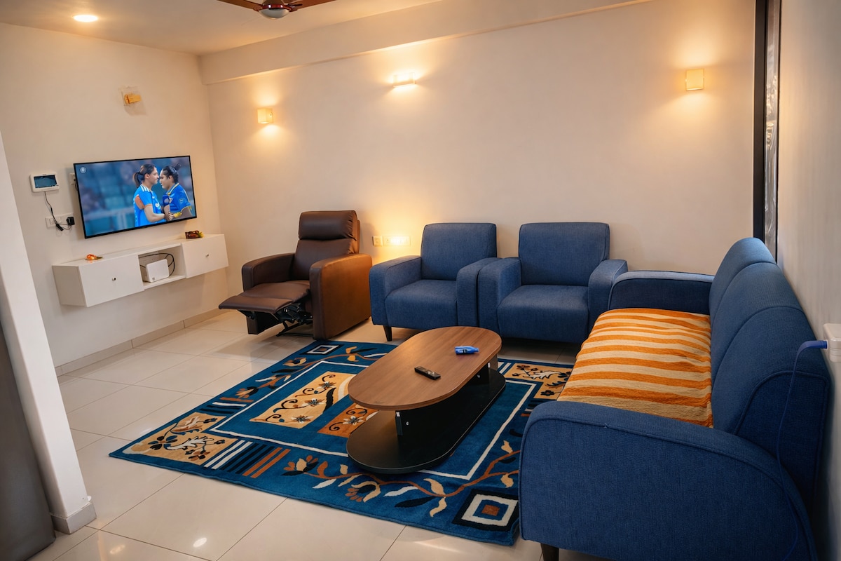 Experience a premium stay in this Luxurious 2BHK apartment at Sapphire Urban Living, GIFT City. Perfect for business travelers or families, it features 2 elegant bedrooms, 2 modern bathrooms, a fully equipped kitchen, smart TV, high-speed Wi-Fi, AC, and a private balcony. Located in a peaceful, secure complex near the clubhouse and key business zones. Professionally cleaned with fresh linens. Ideal for short or extended stays.