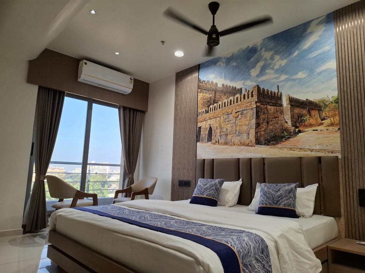 Welcome to The Lavish Affair, a luxurious 4BHK homestay located in the HEART of Bhuj This spacious abode is the ONLY Airbnb of the city situated at it’s centre. With its blend of modern interiors, terraces, a beautiful Terrace Garden and a luxurious living space, this is your perfect retreat amidst the vibrant culture of Kutch. Each room has been thoughtfully designed with a touch of elegance and local charm, making it ideal for families, couples, or solo travellers seeking comfort and style
