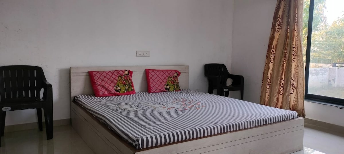 🛕🏡🚜 Nestled in the heart of BHAT village, our home is surrounded by a friendly neighborhood 🏘️ and a serene temple 🕉️, offering a true slice of village life. Located on the first floor, it blends rustic charm 🪵 with modern touches 🏡. My family lives on the ground floor, ensuring a warm, welcoming stay. Guests can access a peaceful backyard 🌿 and a terrace 🌌 with optional outdoor seating, perfect for a tranquil retreat.