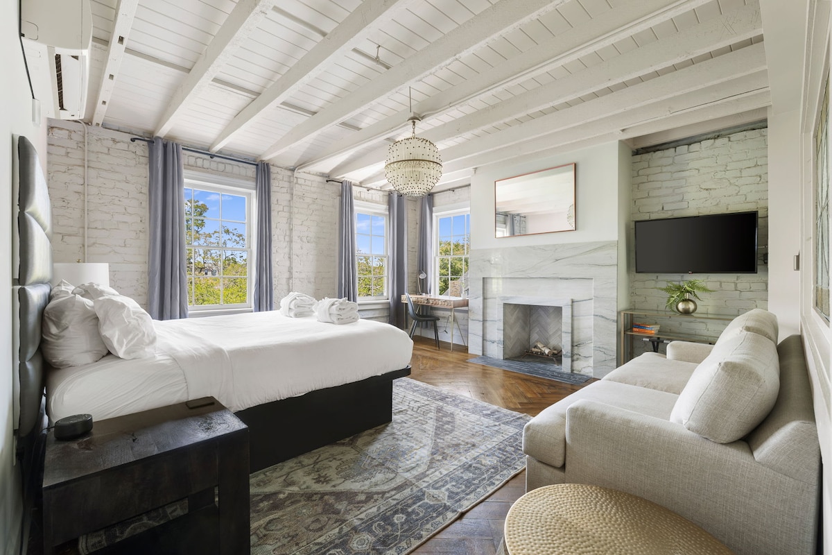 Escape to our romantic riverfront condo on the top floor of a historic 1857 building! Perfect for couples, this 1BR/1BA retreat features original heart pine floors, a spacious living room with a pull-out twin sofa bed, and a fully stocked kitchen with counter seating. Enjoy modern amenities including fast WiFi, in-unit laundry, and a parking pass for a nearby garage! With refined design and an unbeatable central location, you'll be in the heart of everything historic Savannah offers! SVR-02996