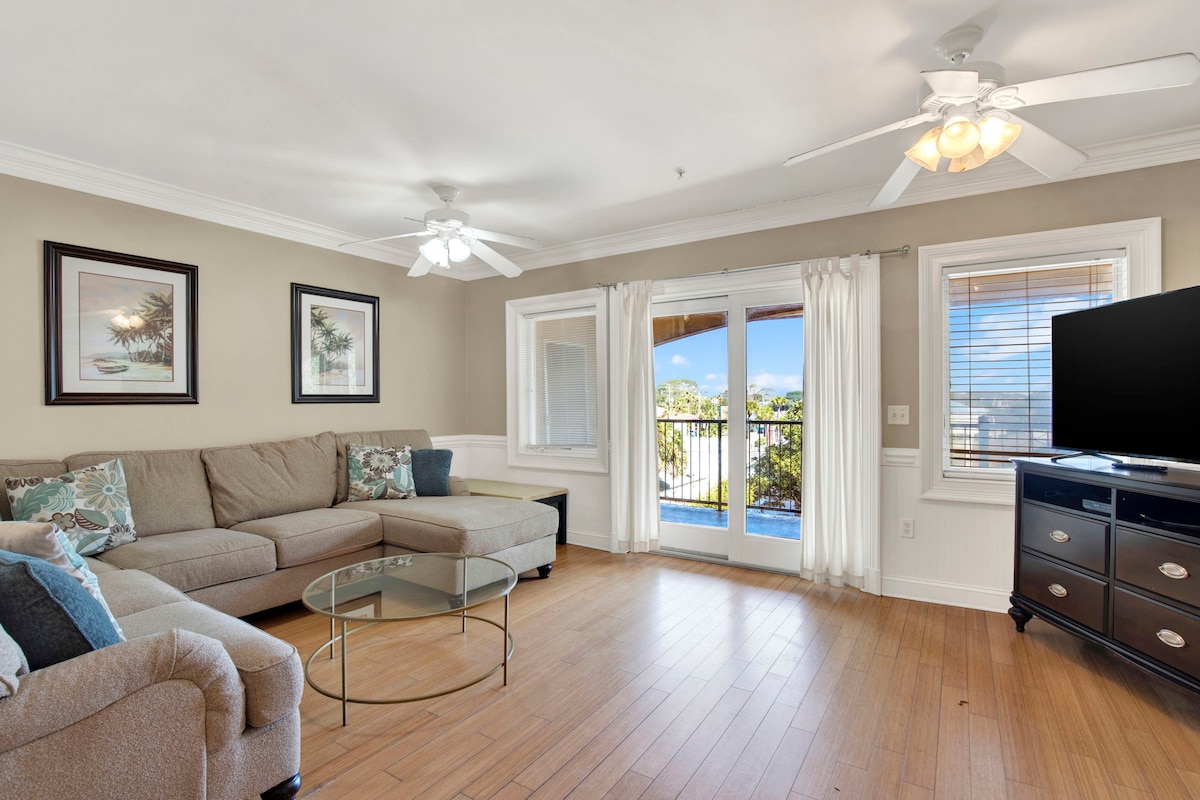 We loved this condo at first site. The view is unbelievable, and it's been recently upgraded and renovated. Walk down the condo stairs and follow a sandy 5 min walk to the ocean. Condo has an unobstructed view of the beach and ocean. This condo offers private condo beach access, two great pools and free covered parking space. Cant get much closer to beach! Ask about our golf cart rental. This condo is on the third floor and no elevator. There are 46 steps however the view is amazing!