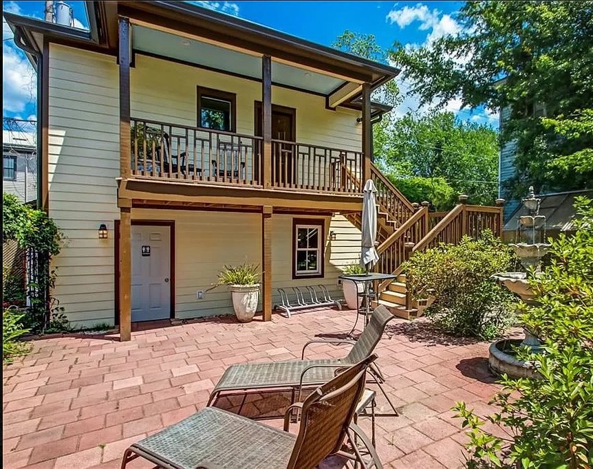Perfect for romantic getaways and honeymooners, this private, historic carriage house is tucked into the beautifully landscaped courtyard of a regal Savannah Home. Steps from restaurants, theaters and nightlife, it retains the original brick floors and walls and includes reserved, off-street parking. Please note that this is an authentic, historic building and the staircase is historic, too. It is steep with a sharp turn. City of Savannah Short-Term Vacation Rental Certificate #SVR-00023