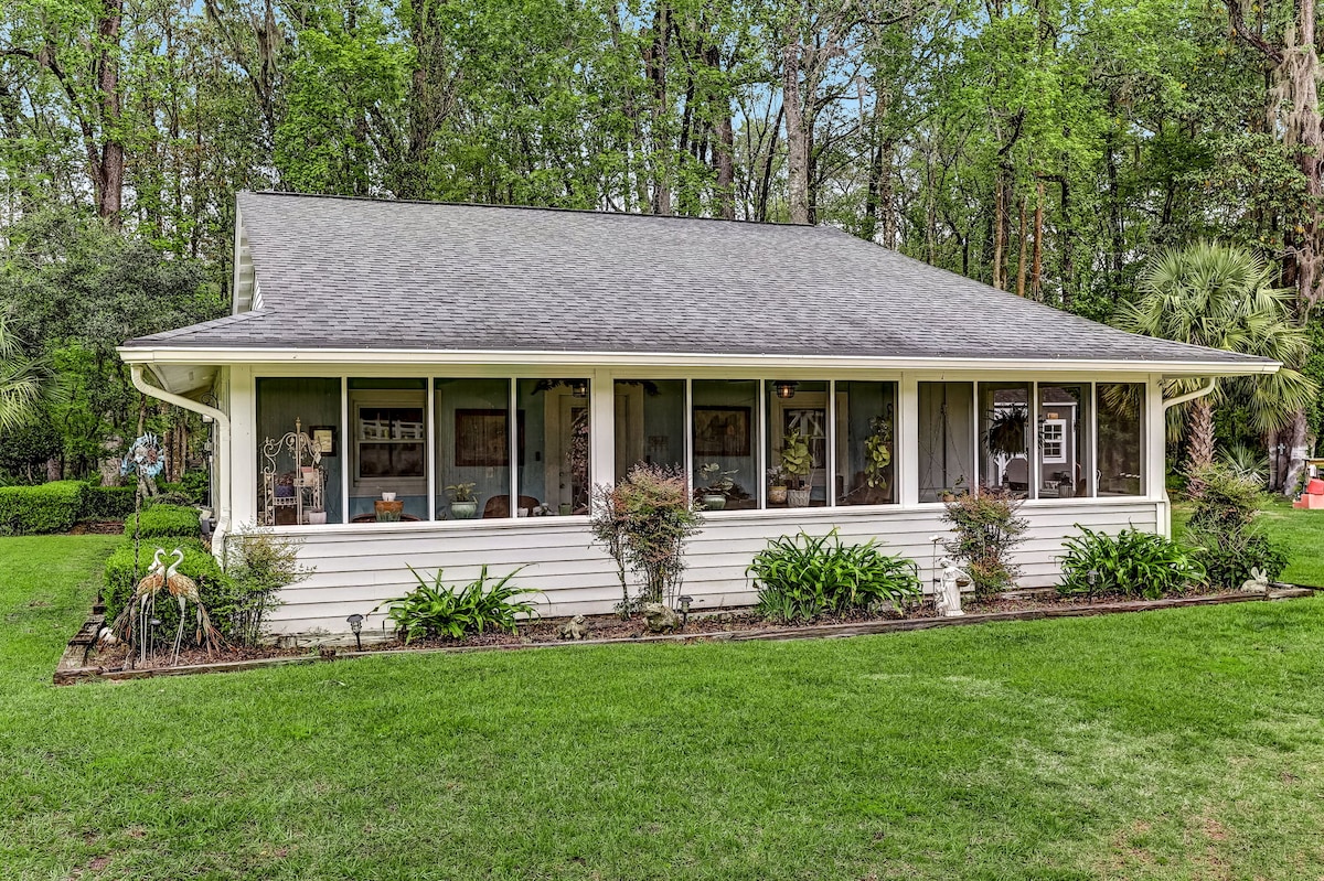 Escape to the southern countryside and experience the peace and tranquility of our cozy cottage! Nestled near a picturesque pasture with my horse Brio, a serene pond, and 4 1/2 acres . This property is the perfect retreat for nature lovers. Only 15 minutes to downtown historic Savannah, and 25 minutes from Tybee Island beach! Quiet country living, city within minutes. Sleeps 4 adults! Children welcome. Pets allowed 2 dogs. No Pit Bulls or Pit mixes. No smoking, Vaping on property.