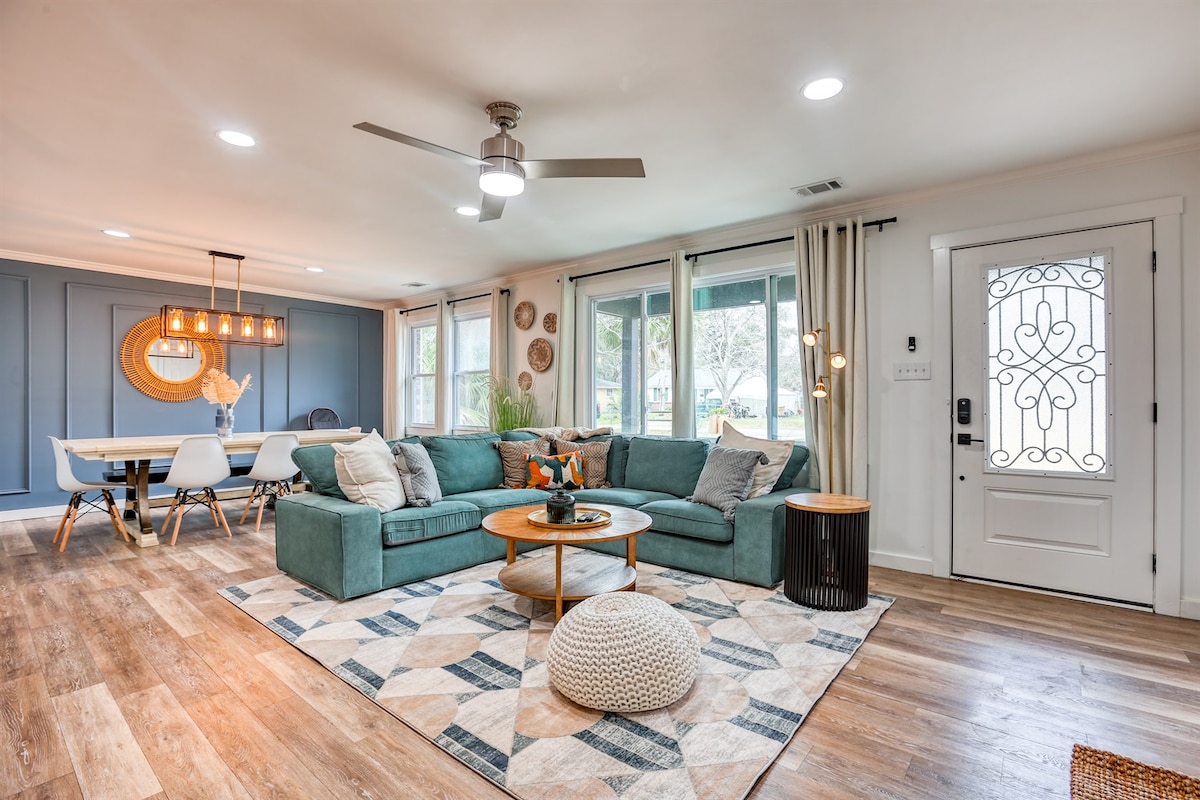 This amazing large home will WOW you with its beautiful and cozy furnishings and decor. The space was simply designed with comfort, functionality, and leisure in mind. When you stay here, you will be right in between what travelers come to Savannah for - The Beach and Historic Downtown. From the driveway, simply turn into highway 80 and go East to find North Tybee Beach in 20 minutes. Or head West to arrive at Historic Downtown in 10 minutes. You don't want to miss staying here!