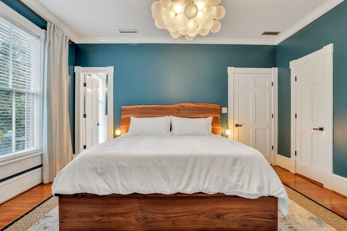 This premium home in Savannah can fit up to 10 guests with its 3 bedrooms, 2.5 bathrooms, and a short walk to Forsyth Park. With its modern amenities, including a deck, this home is great for those who want to be near everything Savannah has to offer. The professionally designed spaces offer open-concept layouts and kitchen & dining spaces perfect for entertaining.