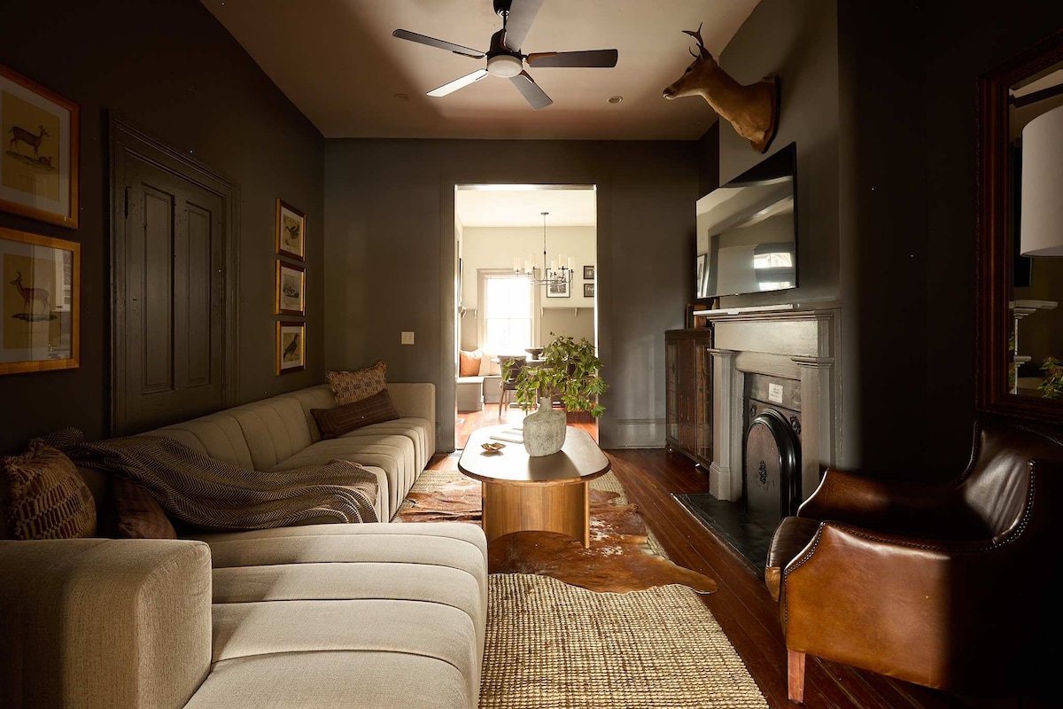 Built in 1892, this renovated condo blends historic charm with modern amenities. Relax in the jacuzzi tub, unwind on the private patio with BBQ access, and enjoy a shared pool (unheated). Steps from Forsyth Park and a short walk to restaurants, cafes, and shops. Sleep soundly in a cozy king bed or stretch out on the queen sleeper sofa. Fully equipped kitchen and luxury bathroom with toiletries. Ample free street parking and public transport nearby. We’re happy to share local restaurant tips!
