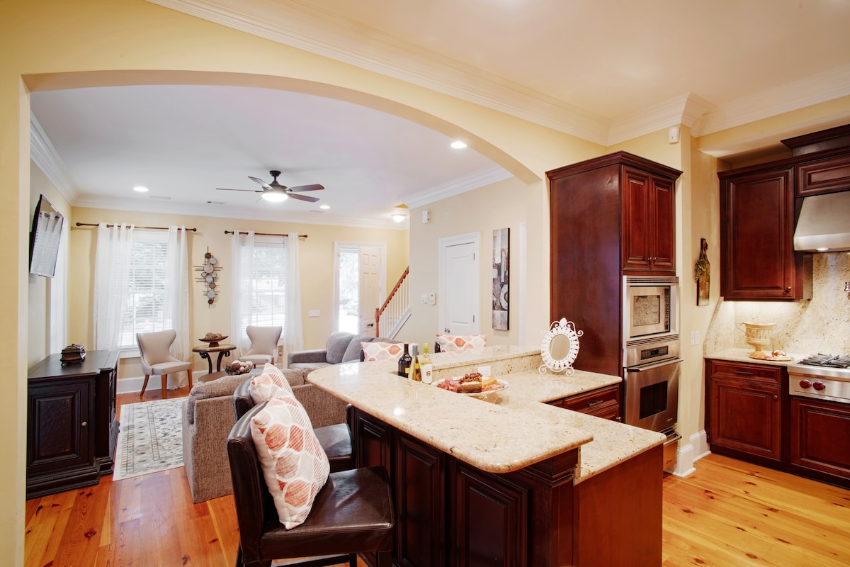Arguably the best location in Savannah—this beautifully designed home sits on the Riverwalk in the new Eastern Wharf development. Walk to the Historic District, explore nearby shops and restaurants, or head just 15 miles to Tybee Island for a beach day. In the evening, enjoy unmatched skyline views with a cocktail at Bar Julian, just steps away at the Thompson Hotel. With stylish decor and off-street parking, this home is the perfect Savannah retreat.