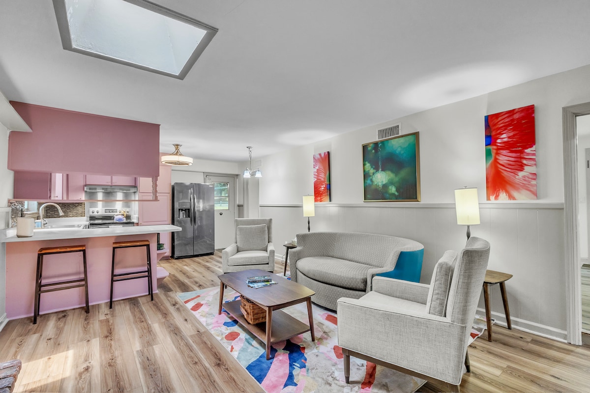 Stay in a artsy, spacious townhouse only one block from the center of Savannah's famous Forsyth Park and a short walk to shops and restaurants. Perfect for families, couples and small groups: fully equipped with wifi, cable, a smart TV -- and your own private garage! Our apartment is pro-cleaned and carefully prepared between each visit. Host is SCAD alumnus! Registered with the City of Savannah: 00580
