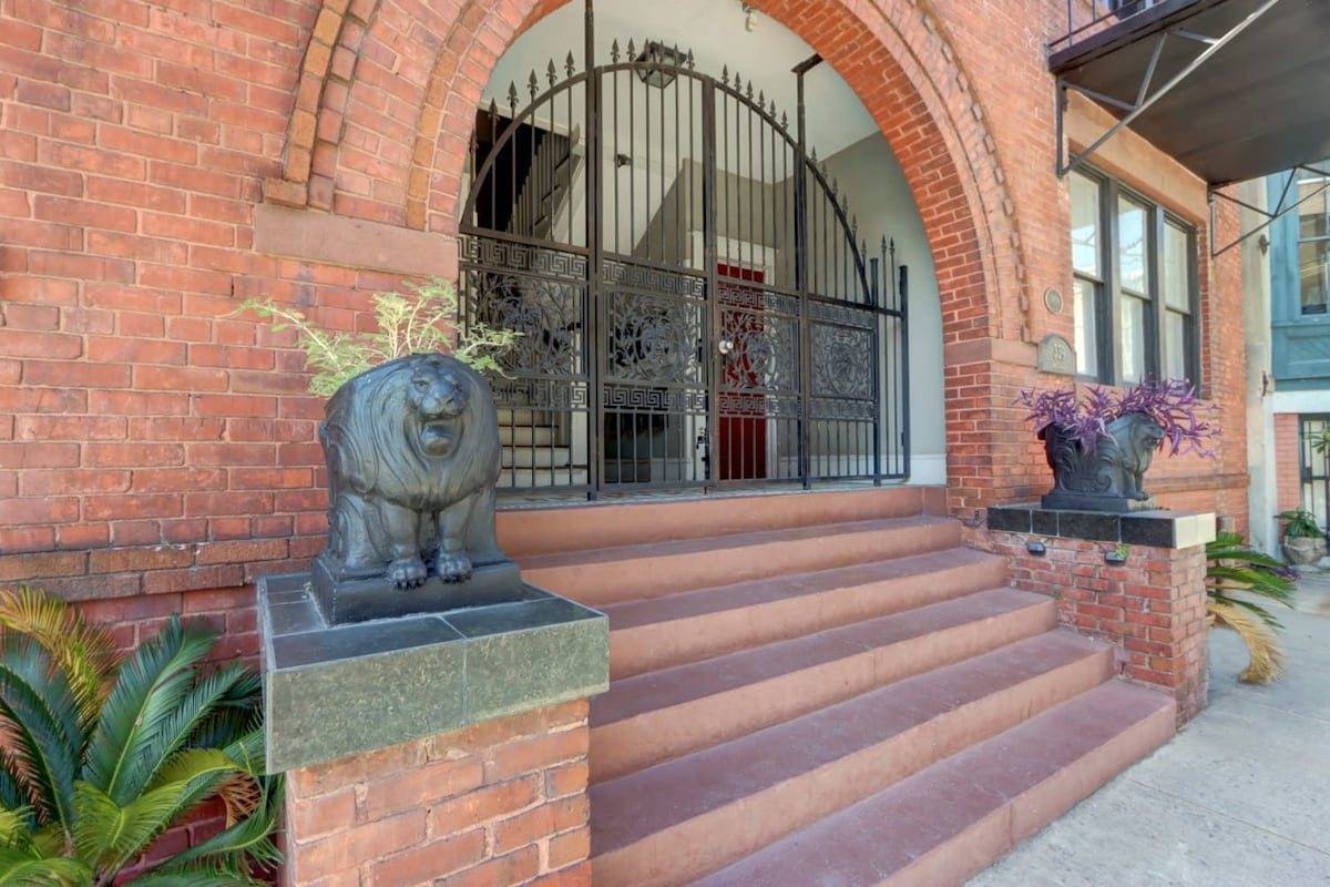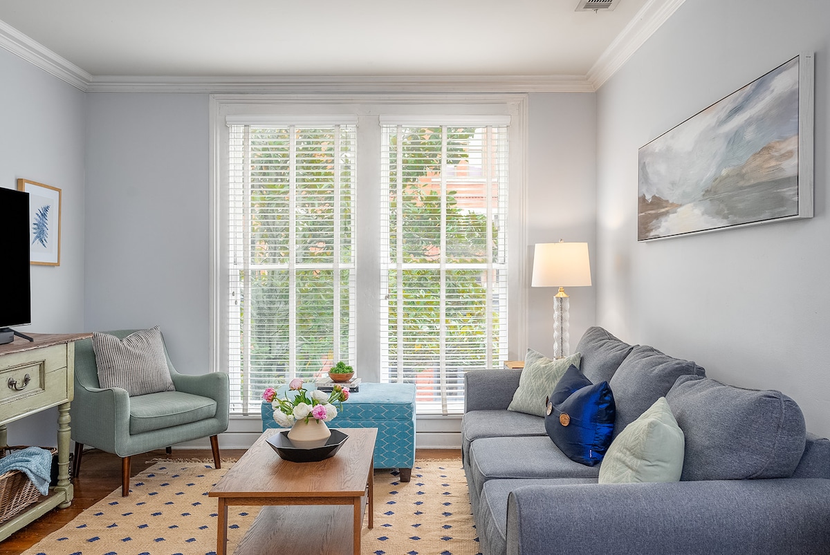 Enjoy our peaceful and spacious condo, perched on the second floor of our historic Savannah estate, just steps away from Forsyth Park! This 1-bedroom, 1-bathroom condo (with a convenient pull-out sofa, great for your extra guest!) is the perfect home base for your Savannah stay! Fully-equipped kitchen with all the amenities, cozy and comfortable living space with flat screen SmartTV, fast WiFi, and the cherry on top...a HUGE private balcony! SVR 01789