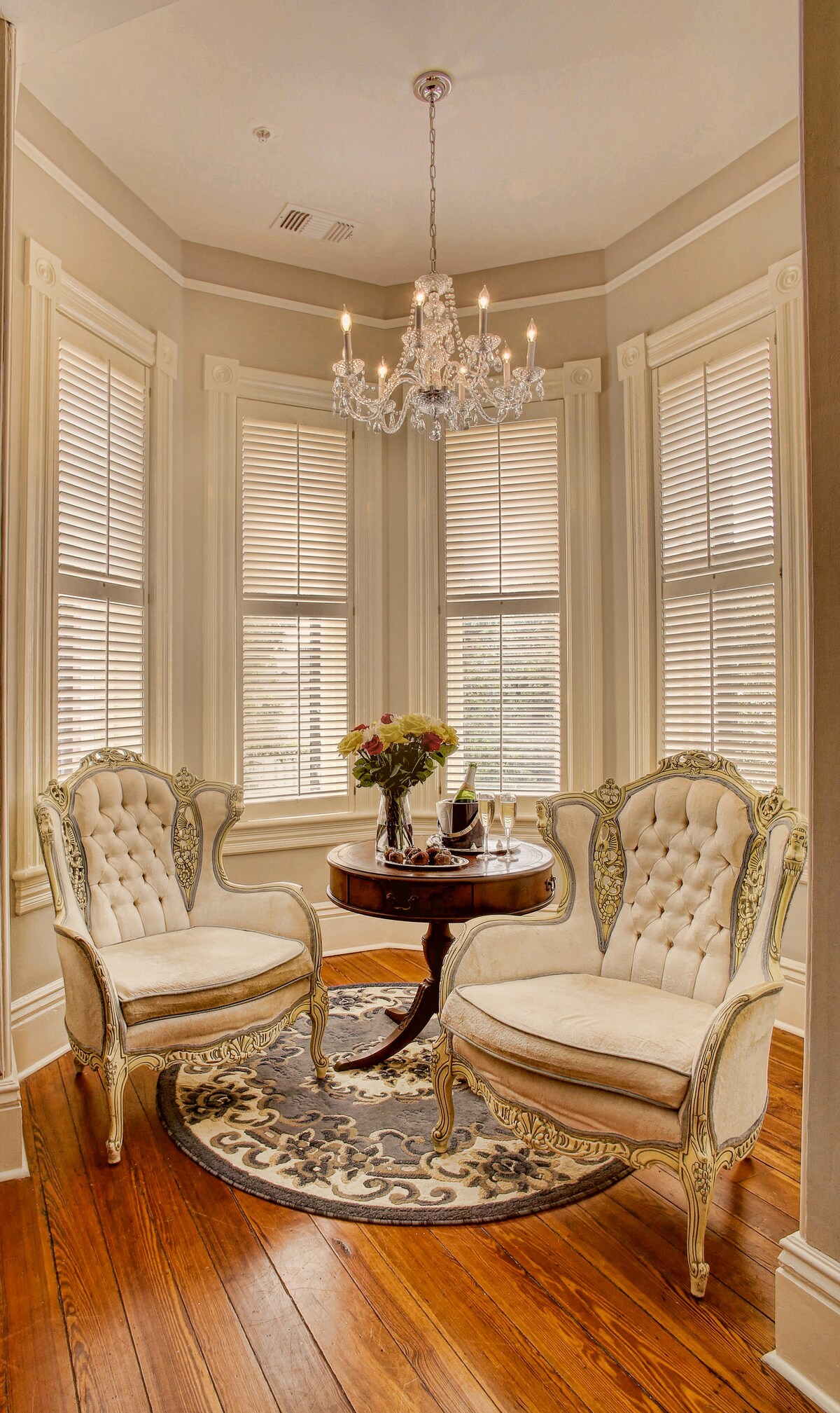 This lovingly restored, 1888 Italianate Revival Inn awaits your romantic rendezvous with that special someone in your life, or perhaps simply enjoy a southern style getaway. Centrally located in the Historic District, the Inn is within walking distance to the best restaurants and attractions. Elegance, value, and Victorian charm are yours to enjoy as and take advantage of some of the most affordable rates with all the amenities and romantic atmosphere one can imagine. Stairs required to room.
