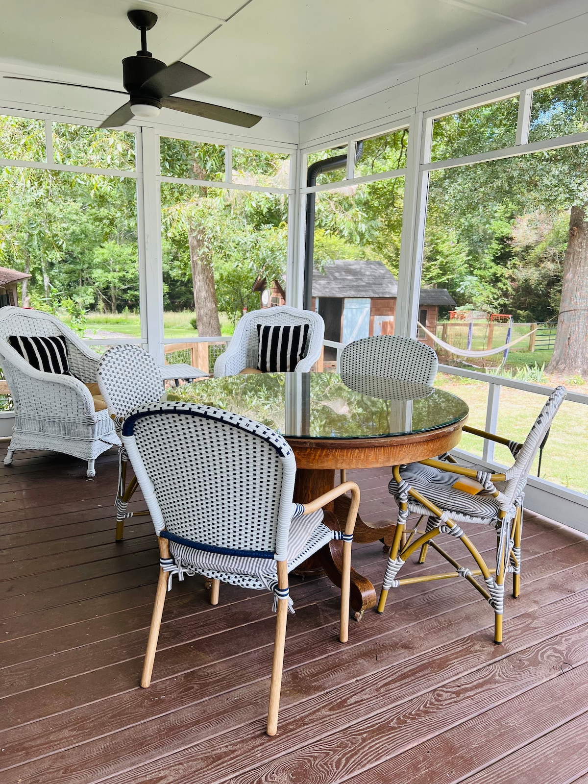 Enjoy the feel of the country while being a short 5 minute walk from the center of Watkinsville. Come relax on the screen porch of this charming historic property that dates from 1840 and listen to the Barred owls hoot from the trees. The room is tastefully decorated with a mix of antique and modern pieces and the queen bed is made up with high quality linens. Parking on premises and private entry.