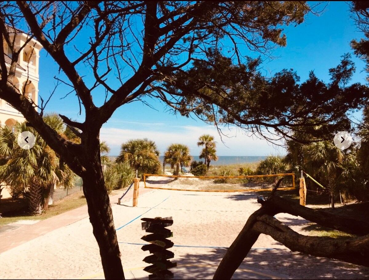 You will be close to everything when you stay at this centrally located beachfront resort Villa. Enjoy on-site Tennis, Pickle-ball, indoor and outdoor swimming, track, workouts, sauna, hot-tub, and of course private beach access and Coco's snack shack at the dunes. 🏖️Bike rentals available on-site. On the Island nearby you'll find shopping, grocery, dinning, entertainment, fishing, boating, water sports, many public golf courses, walking, endless bike trails, miles of beach, ocean fun, etc.
