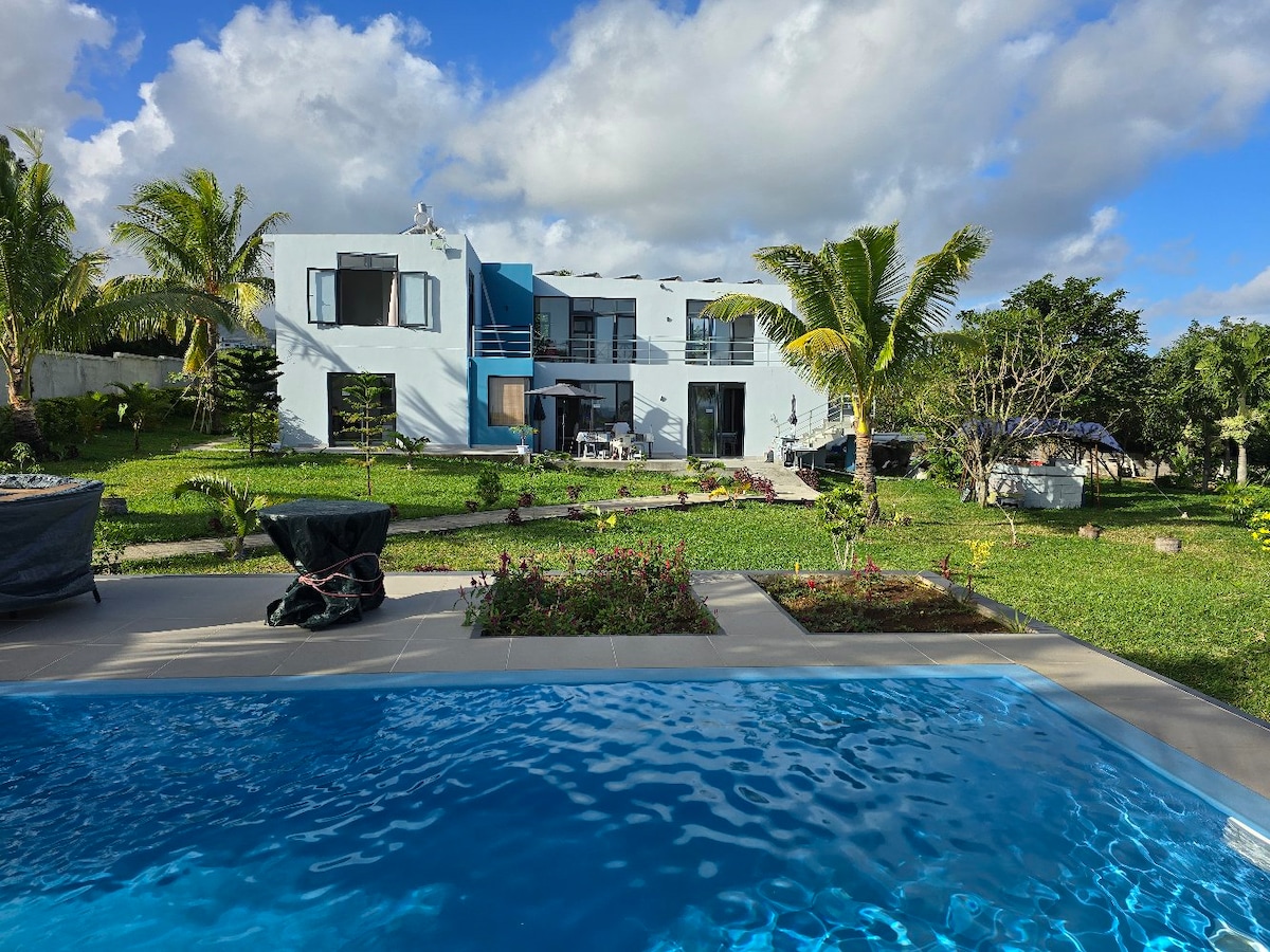 The apartment is the ground floor one. It is spacious and you will have access to free parking in the yard. The building is gated and surrounded by walls on each side. Outdoor games can be played on the lawn. Blue Bay beach is less than 20mins away by car Facilities like supermarket, malls, shops, bus stop services to all parts of the island, hospital among others are easily accessible and are found nearby. Moreover, the airport is nearby and it is 20 minutes by car to the apartment.
