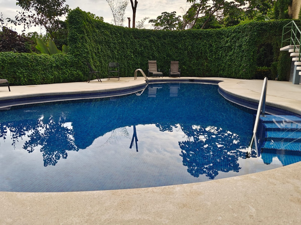 Stunning fully furnished condo in prime Manuel Antonio location! Two queen beds, A/C, and ceiling fans ensure a comfortable stay. Enjoy granite-teak cabinets, modern appliances, and cable TV. High-speed WiFi keeps you connected. Relax on the open-air porch with a table for 6, hammock, and rocking chairs. Dive into the refreshing pool. Close to beaches, restaurants, and stores. Monkeys often visit! Perfect for an unforgettable stay!