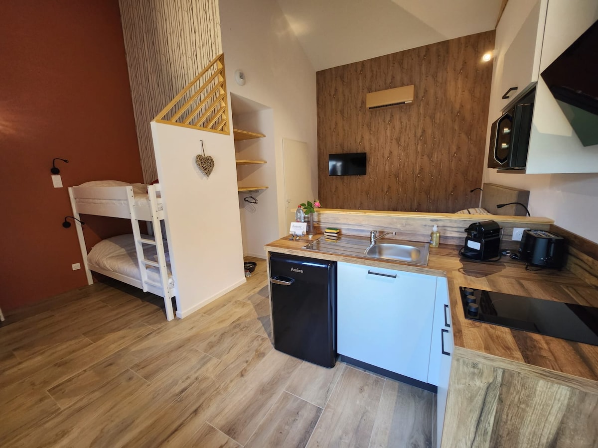 Simplifiez-vous la vie dans ce logement paisible, situé au bord de la forêt d'où vous pourrez apercevoir les chevreuils ainsi que les animaux de la ferme . Venez découvrir nos sentiers de randonnées, nos ballades au bord de la rivière ainsi que diverses activités ( canoé, pêche ... ) Ce logement se compose d'une cuisine équipée, un lit double ( lit parapluie à disposition ), une salle d'eau avec WC. Vous aurez à disposition une terrasse avec barbecue et transat. Linge de maison fourni