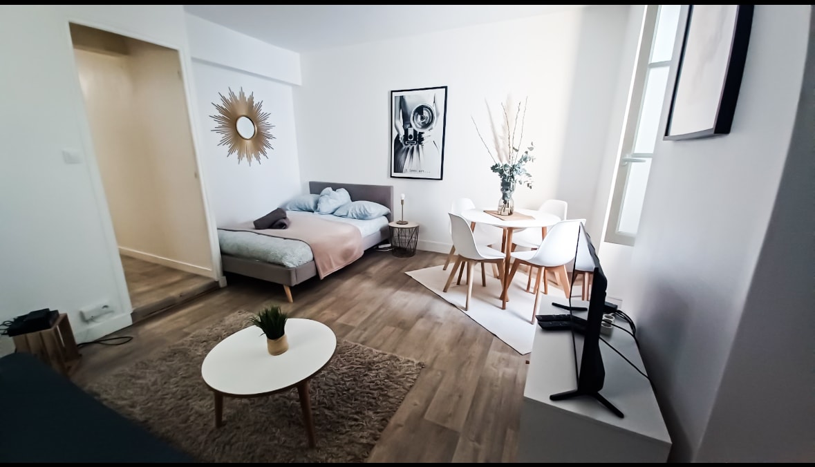 Studio refait à neuf et entretenu avec soin. À deux pas de la gare Viroflay Rive Droite et à 5min à pied de toutes commodités. En transports à 10min du chateau de Versailles, 10min de La Défense et 20min de Paris. Stationnement facile et gratuit à 1min à pied du logement. Literie Haut de gamme Simmons. Internet haut débit Fibre & Wifi. Équipement moderne. Forêt à moins de 10 min à pied. Quartier familial, vivant le jour et très calme la nuit.