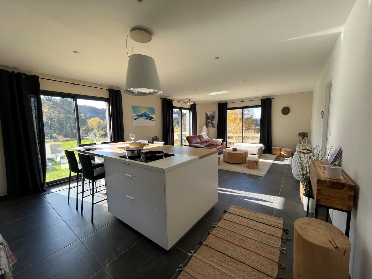 Les Marthalice offre un point de chute idéal pour le repos, pour les passionnés de vélo, de pêche, de randonnées et de nature tranquille. Proche de la ViaRhôna, de WALIBI, du fleuve Rhône et des montagnes du Bugey, cette maison grand confort équipée d'un SPA, d'un local vélo et d'un parking privé saura vous satisfaire.