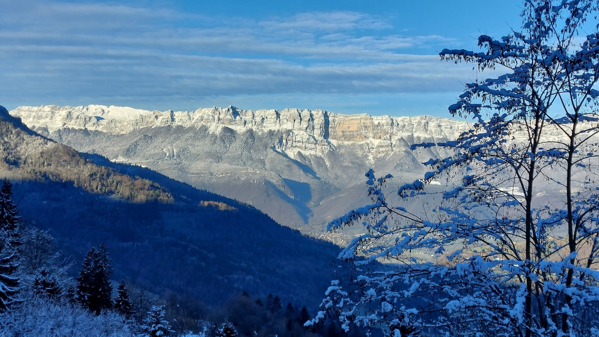 Ancien atelier en pierre entièrement rénové au style contemporain niché en forêt sur le Rocher du Cornillon, en Chartreuse. Le salon et la terrasse offrent une vue panoramique sur le bassin Grenoblois. Donne accès facile aux pratiques sportives (randonnées, escalade, ski) et à la détente (bain nordique, vidéo-projecteur avec grand écran). Ce lieu unique est accessible par une petite route de montagne et proche de tous commerces.