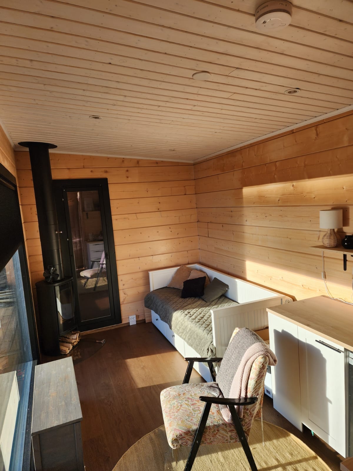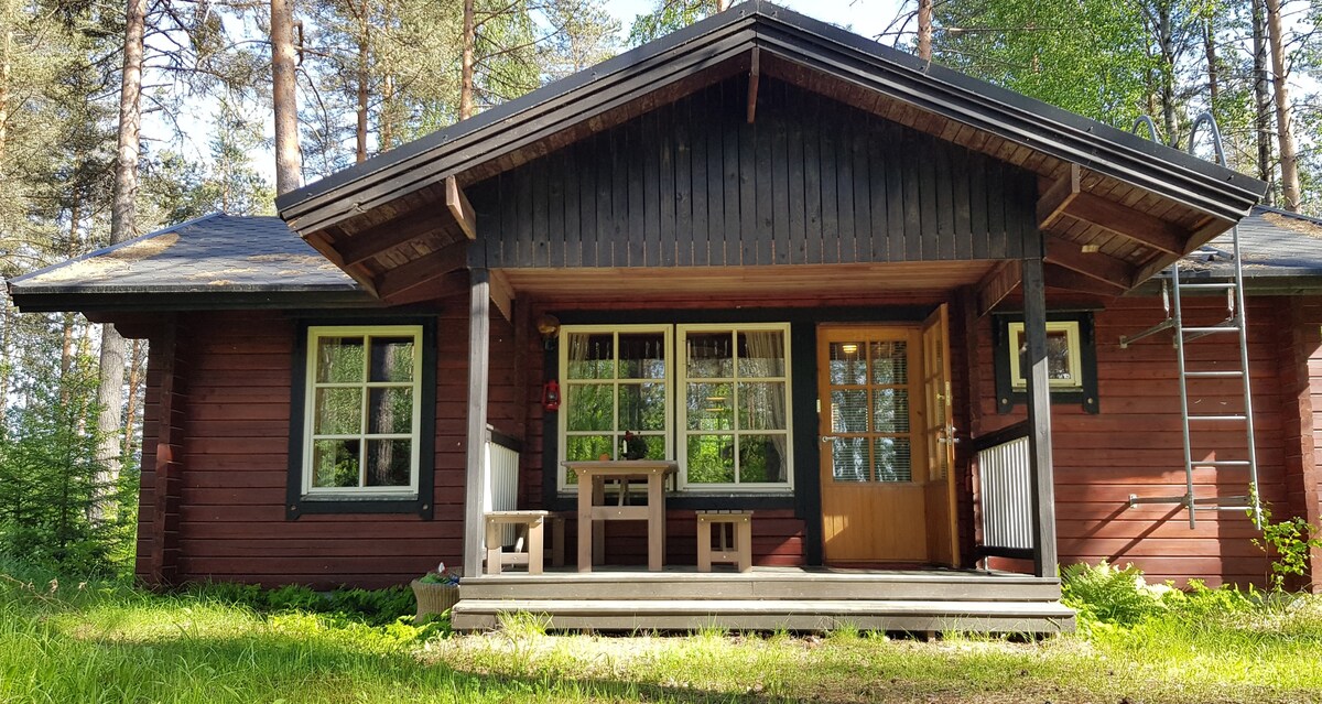 A cozy cottage between pines and the lake just in 2 steps from Saimaa. It is quite small inside (30 square meters) with a big open terrace and a green lawn in front of it. There are a Loft bed for 2 people with a view, a small kitchen, fireplace, sauna on woods inside the cabin. It is great to start your day from early swimming and yoga/breakfast at the terrace listening to birds songs and finish your day with a glass of wine taking pictures of a stunning sunset.