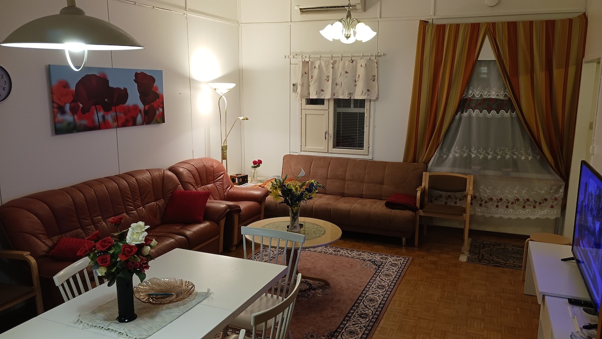Cozy 37 sq m studio-apartmetnt (400 sq ft) with sauna in a quiet place in the center of Savonlinna. Excellent location to explore the city on foot or bike. The studio is very comfortable for two, but can accommodate two more on the retractable sofa. Additional mattress is available, which makes sofa bed comfortable too.