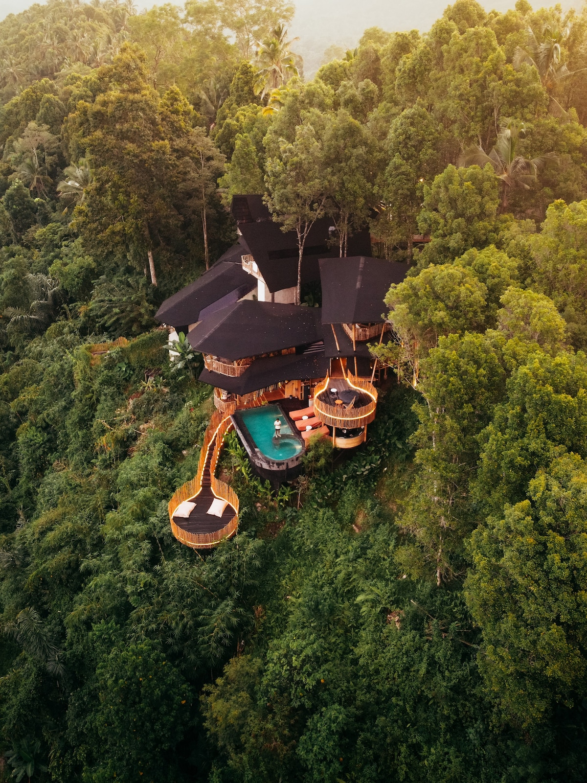 Experience luxe living in our Balinese tree house, nestled amidst the verdant countryside. This luxury cabin, resembling a tiny home, boasts an impeccable design that seamlessly blends with nature. Wake up to an amazing view of majestic mountains, right from your bed. Relax in the unique outdoor bathtub, surrounded by the serene whispers of the jungle. Feast on delightful BBQs on the private deck, set against a panoramic backdrop. Dive into the essence of Bali – where luxury meets the wild.