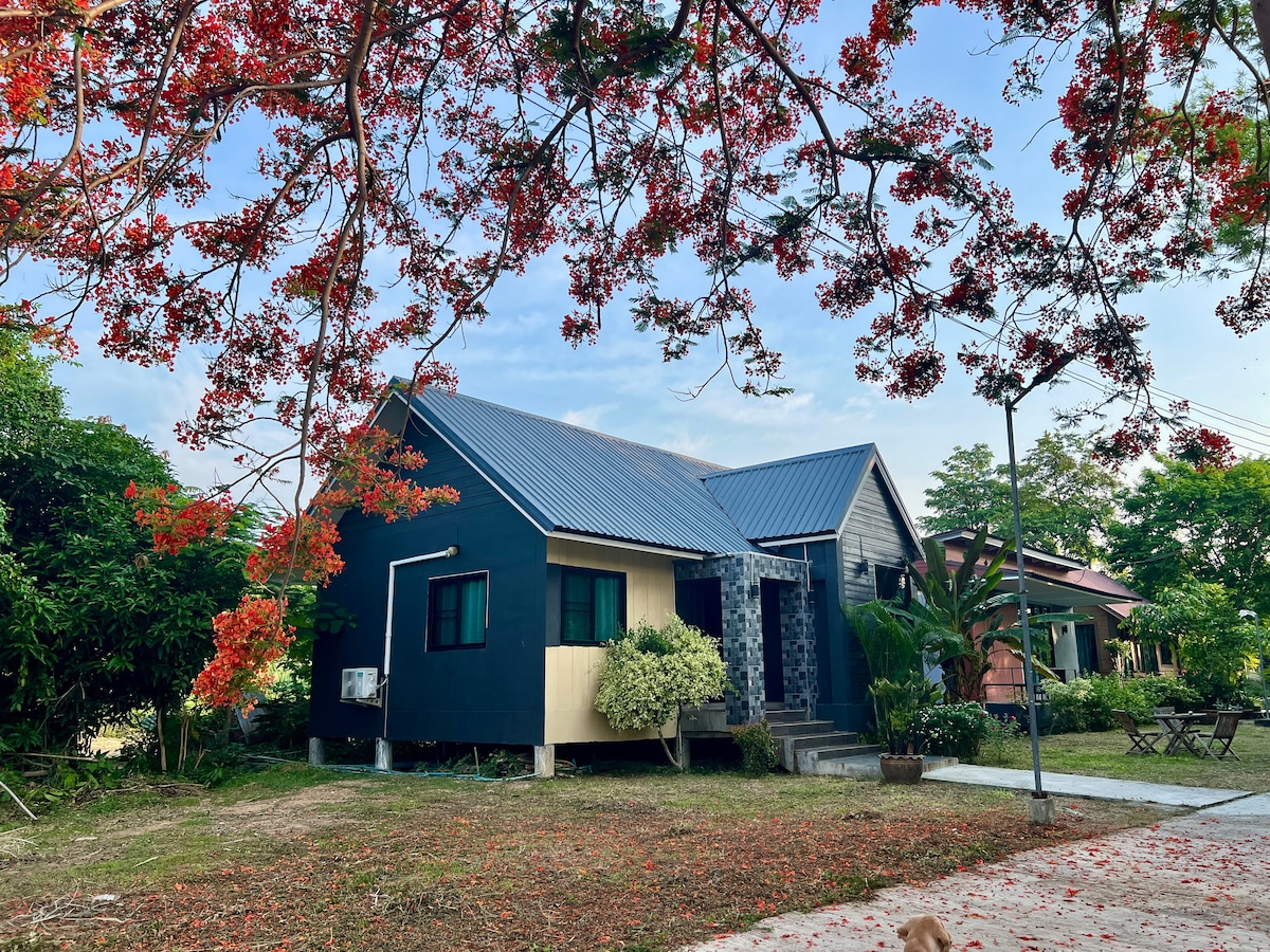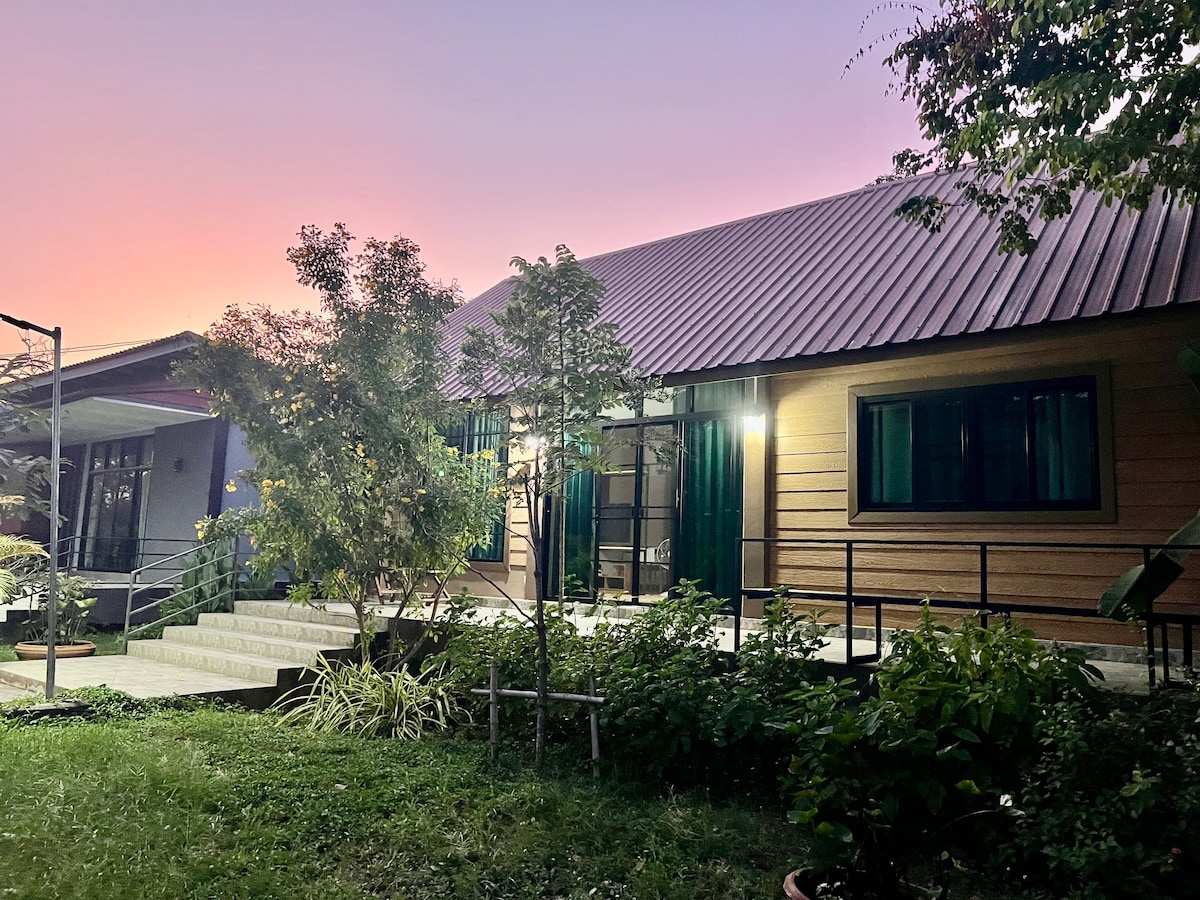ลืมความกังวลไปได้เลยเมื่ออยู่ในที่พักที่เงียบสงบและกว้างขวาง ในบรรยากาศในสวน ธรรมชาติ ใจกลางเมือง มีสิ่งอำนวยความสะดวกครบครัน ปลอดภัยืใกล้ตลาด ใกล้ สนามบิน